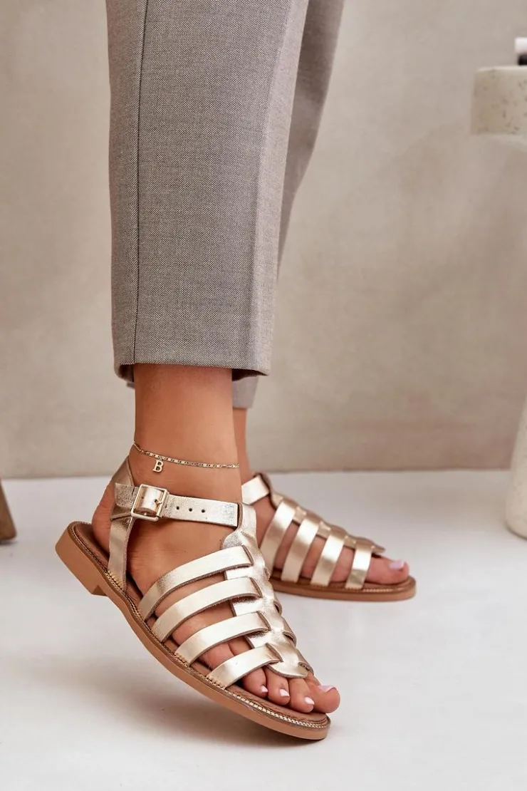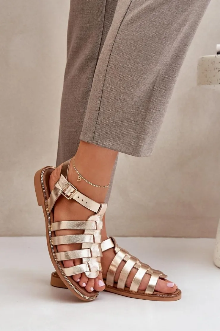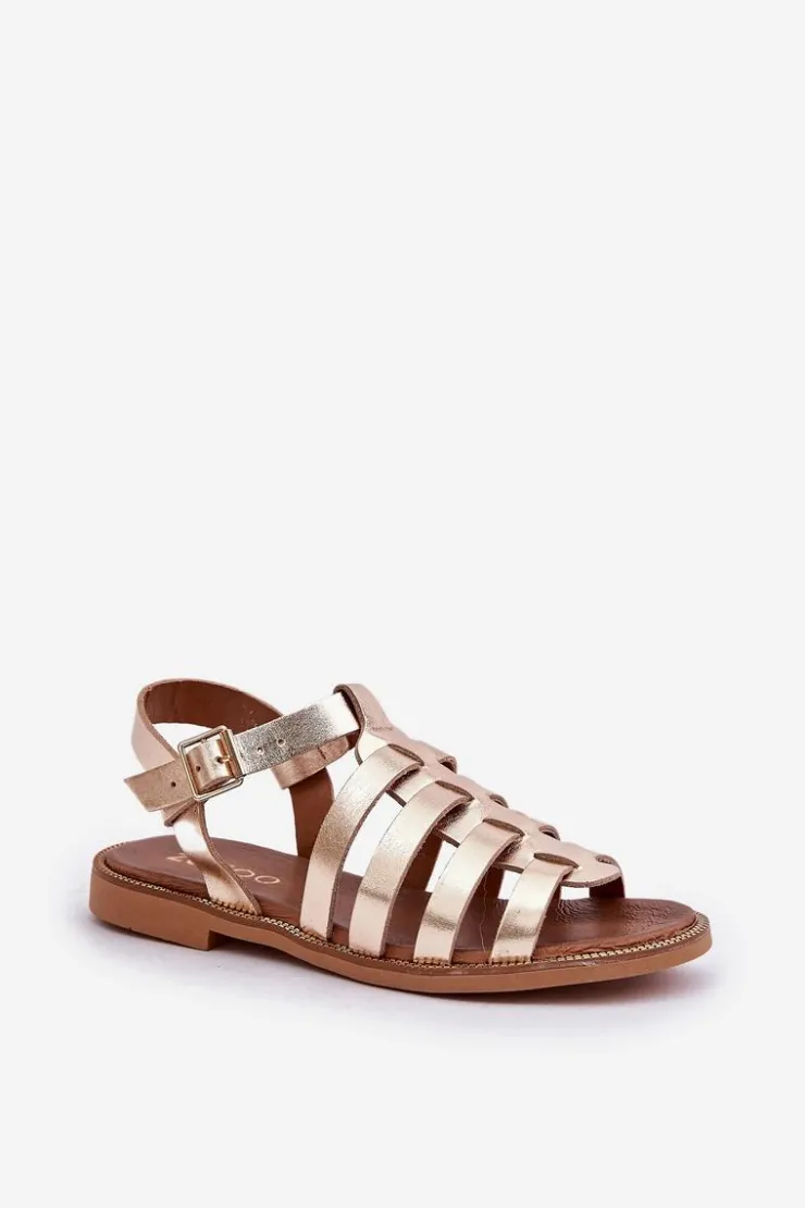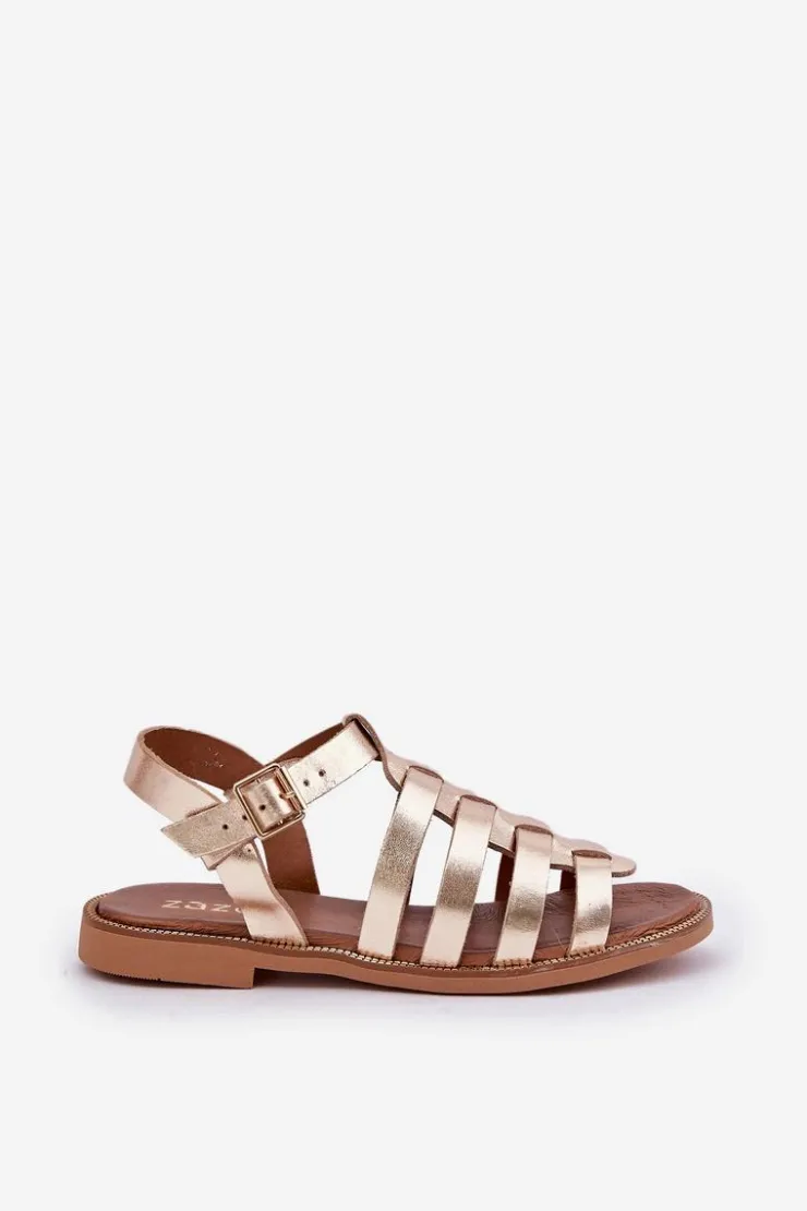 Online Boto Skórzane Sandały Na Płaskim Obcasie Zazoo 3686 Złote Złoty