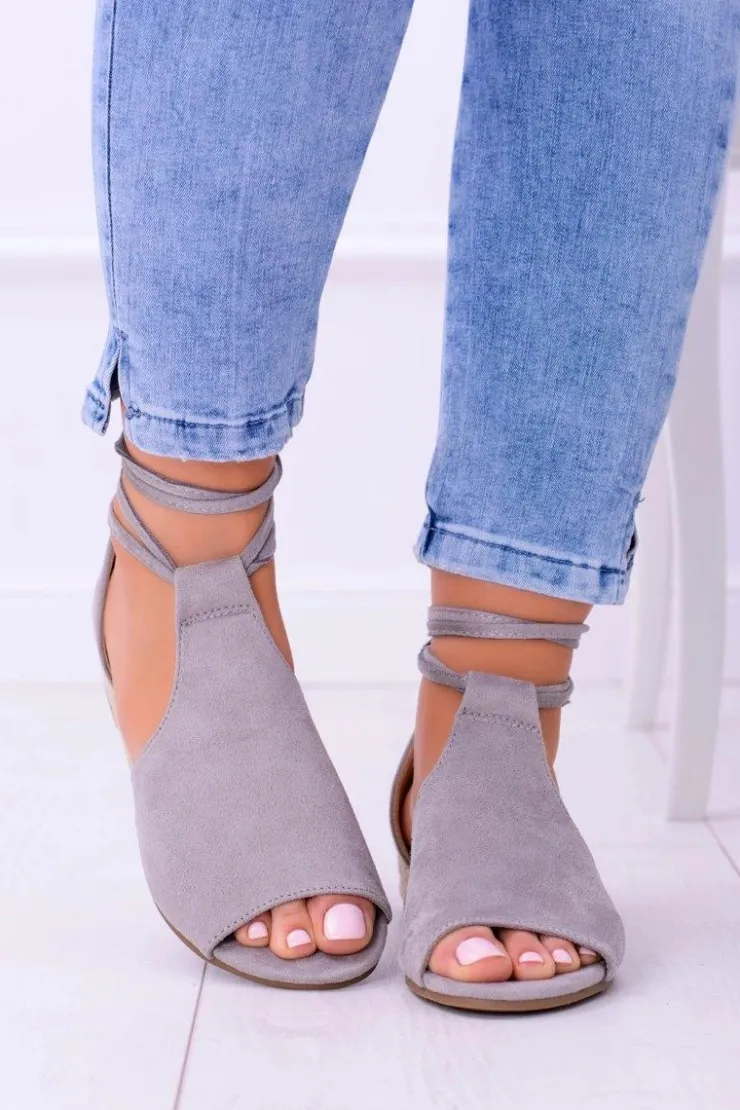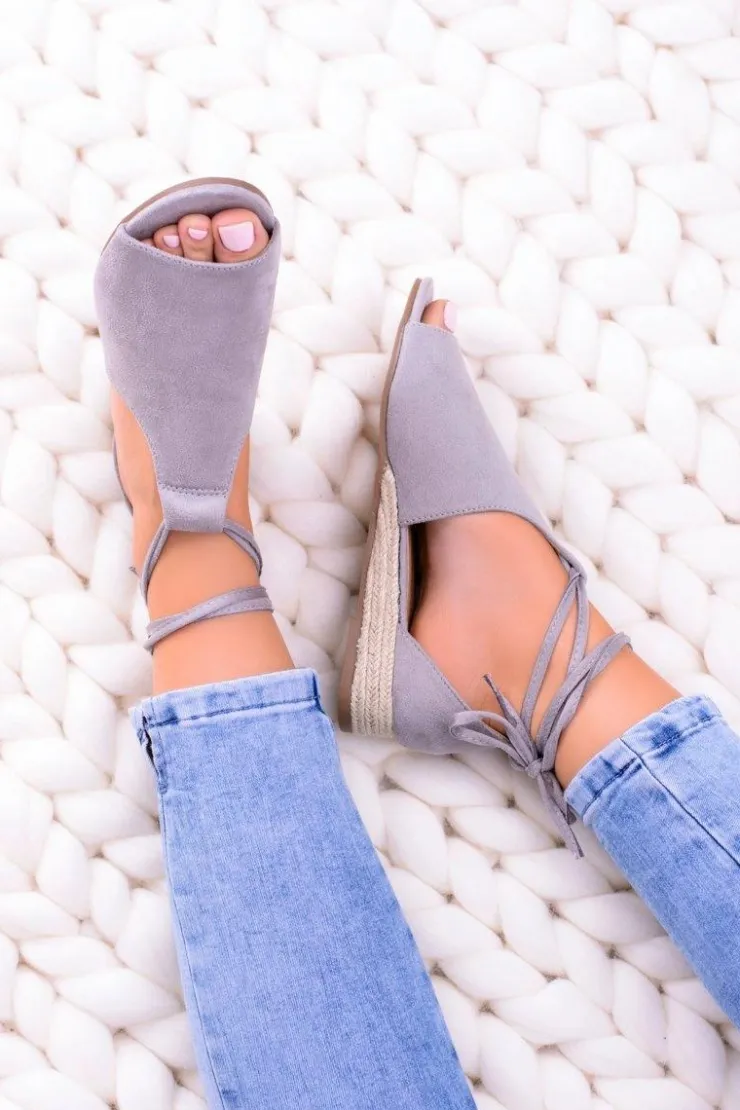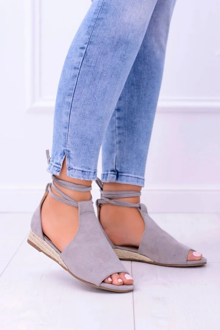 Wspaniałe damskie sandały na lekkim koturnie są najwspanialszą rzeczą jaką możesz sobie wyobrazić podczas nadchodzących ciepłych dni. Ekozamszowy, zabudowany wierzch to coś czego potrzebujesz! Sandałki wiązane na sznureczek wokół kostki. Dostępne w dwóch cudownych kolorach. Sprawdź całą naszą ofertę!