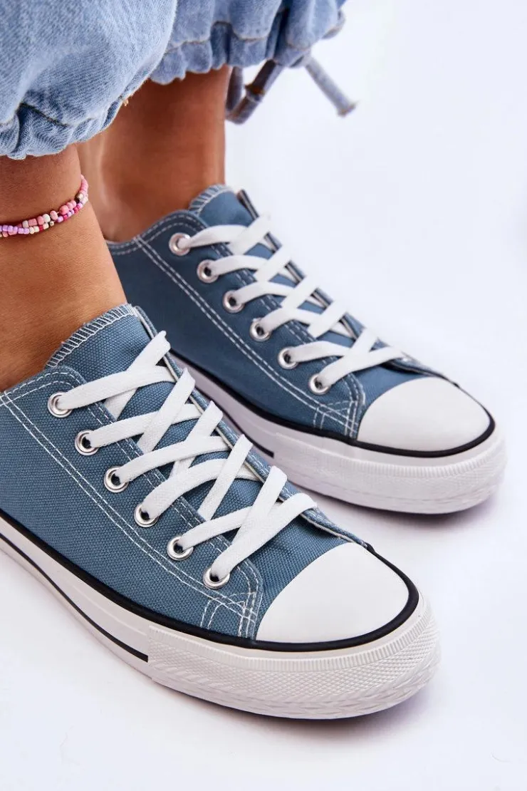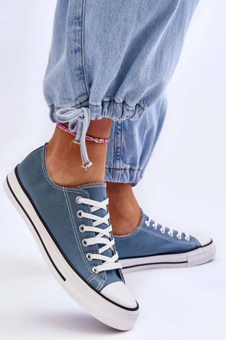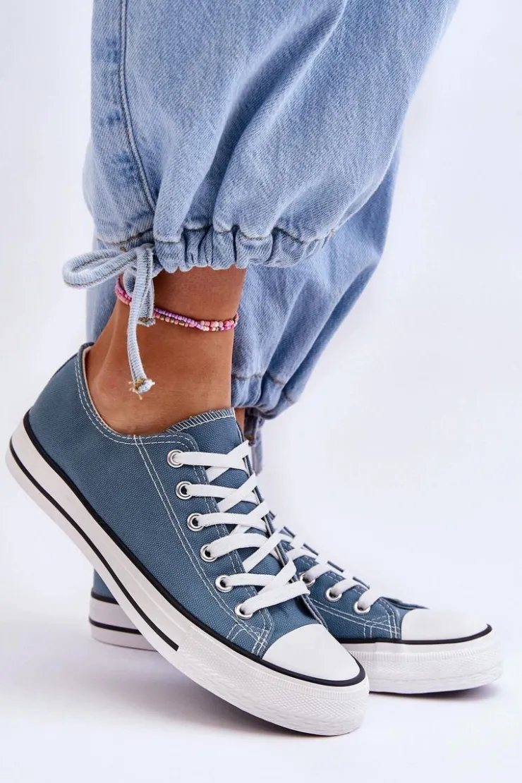 Klasyczne, sznurowane trampki damskie zostały wykonane z materiału tekstylnego. Posiadają gumową podeszwę, która jest dodatkowo antypoślizgowa. Ponadczasowy model, który powinnaś mieć w swojej szafie! Z pewnością założysz je do wielu stylizacji! Nosek został wzmocniony gumowym tworzywem. Wygodna, materiałowa wkładka zapewni komfort podczas użytkowania. Przy wyborze rozmiaru prosimy sugerować się tabelą rozmiarów.