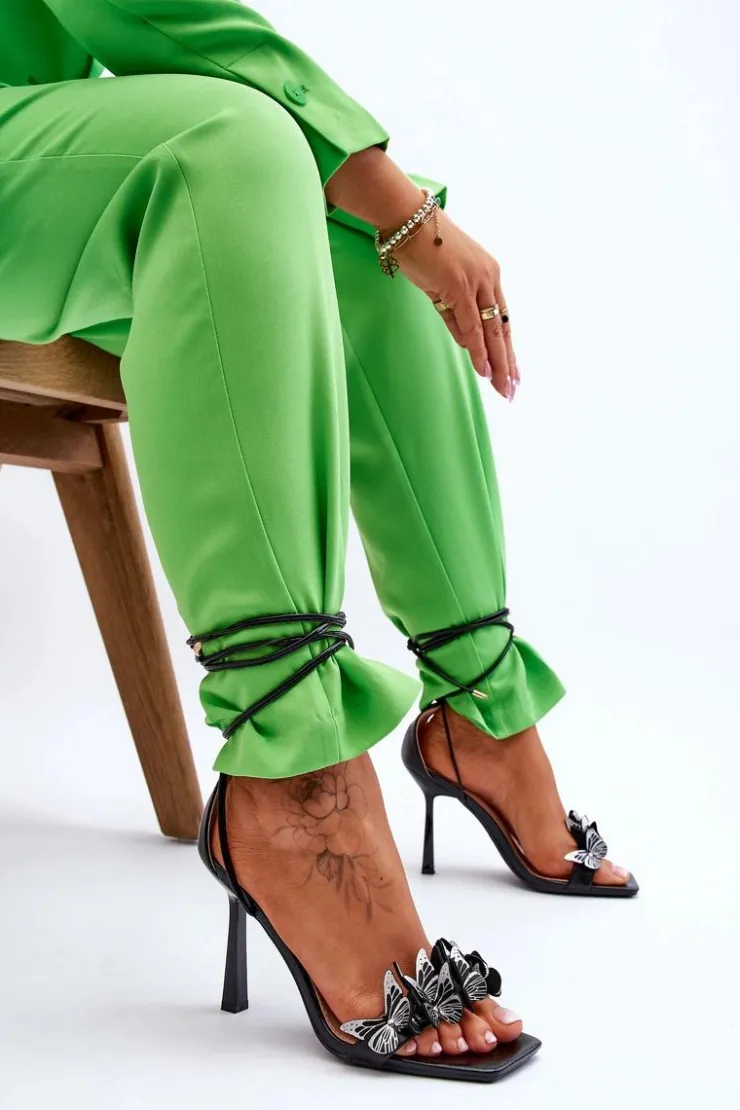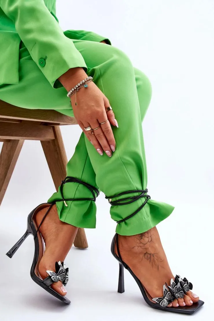 Niesamowite sandałki damskie wykonane z eko skóry posiadają na przodzie urocze motylki. Model ten jest wiązany na wysokości łydki. Dodatkowo zapiętek w tych butach jest usztywniany. Tym modelem urozmaicisz wiele stylizacji! Sandałki zostały osadzone na szpilce. Koniecznie powinny być Twoje! Przy wyborze rozmiaru prosimy sugerować się tabelą rozmiarów.
