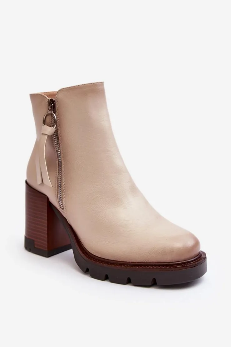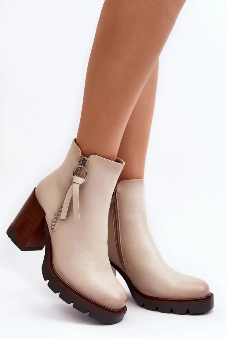 Botki na masywnym obcasie w postaci słupka i platformie zostały wykonane z eko skóry. Zapinane z boku na suwak. Dodatkowo posiadają usztywniany zapiętek. Środek został ocieplony kocem obuwniczym. Na zewnętrznej stronie znajduje się ozdobny zamek. Koniecznie powinnaś mieć ten model w swojej garderobie! Przy wyborze rozmiaru prosimy sugerować się tabelą rozmiarów.
