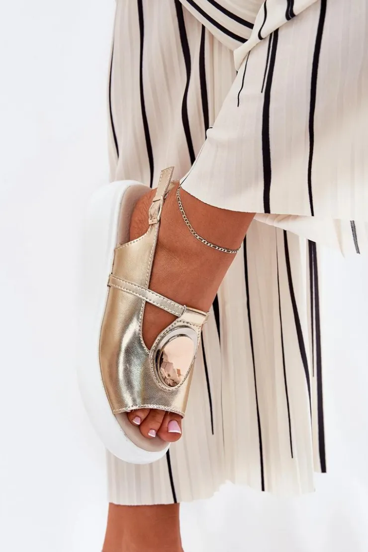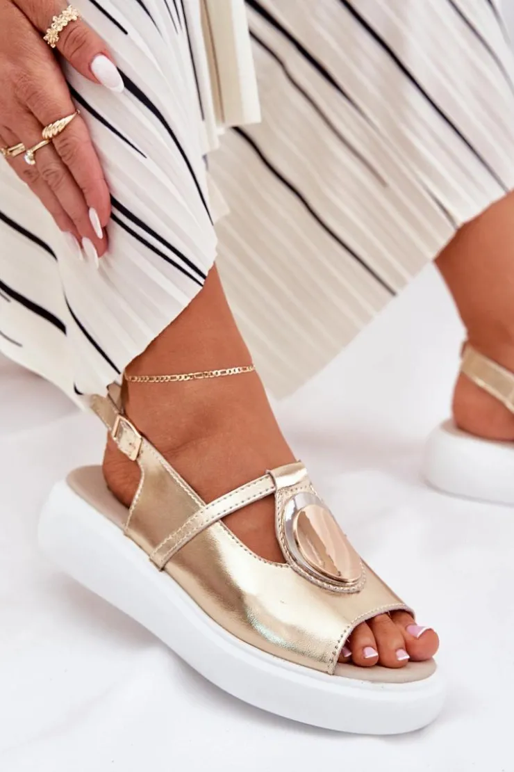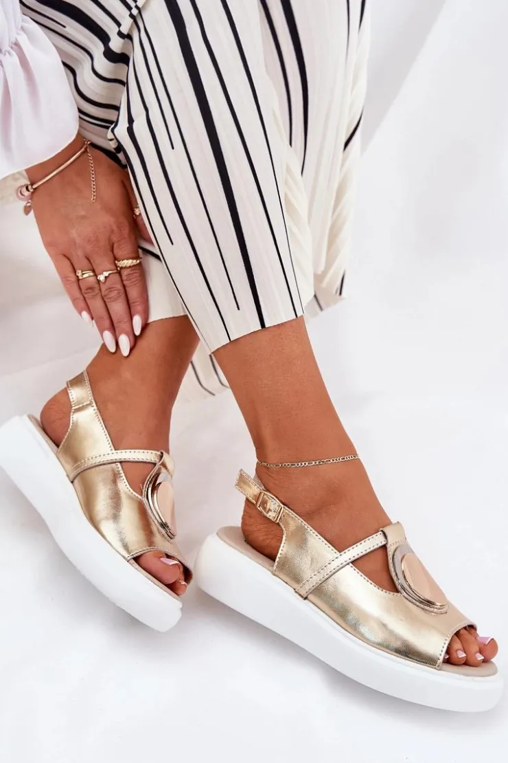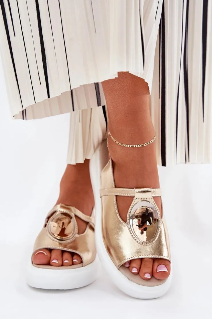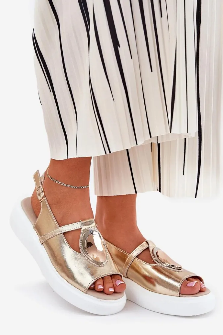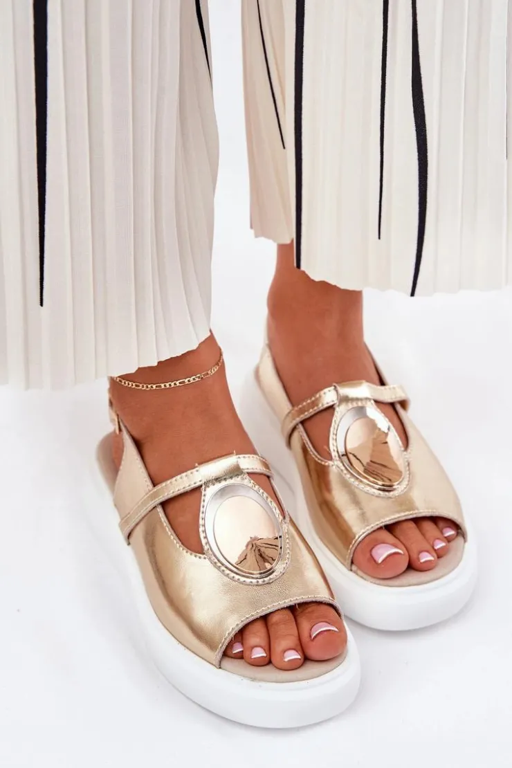 Online Damskie buty S.Barski Skórzane Eleganckie Sandały Damskie S.Barski GR51-603 Złote