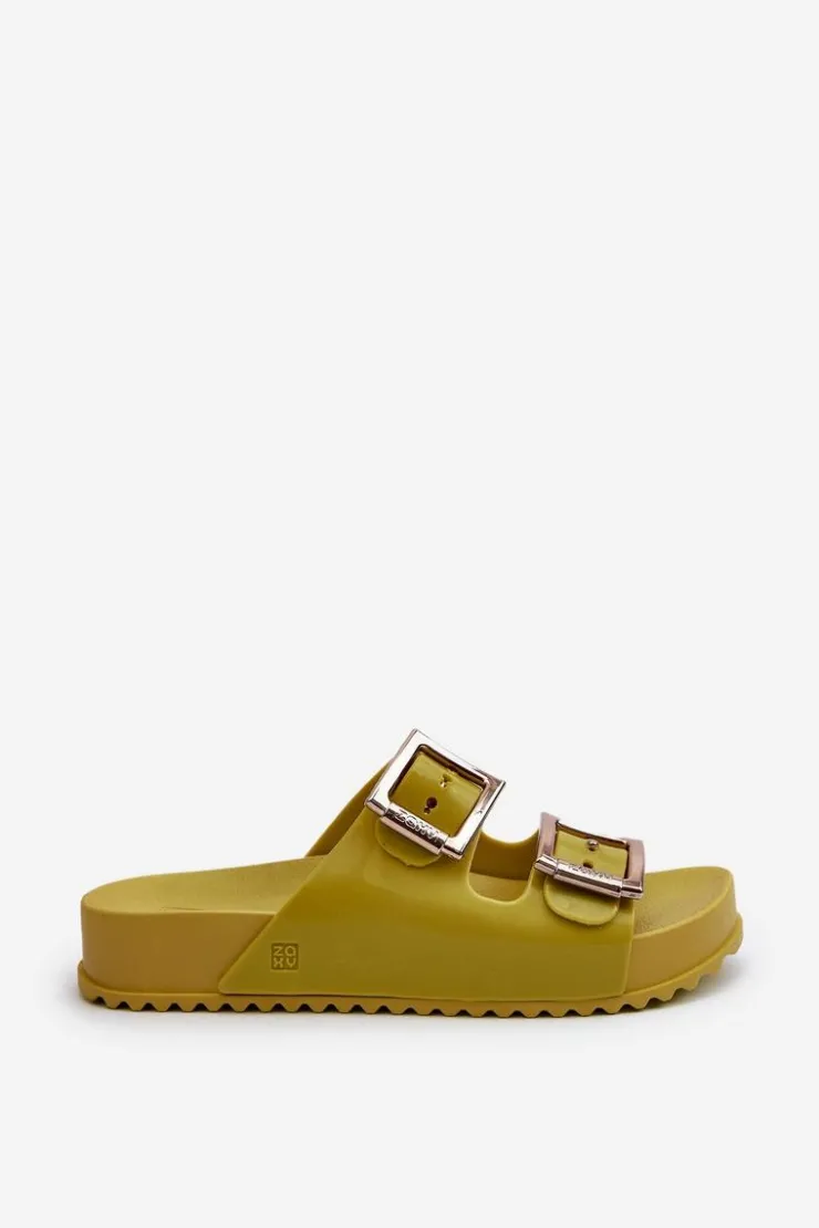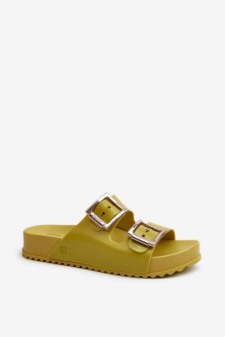 Wygodne obuwie, które zapewni Twoim stopom pełen komfort podczas letnich, ciepłych dni. Funkcjonalne klapki na płaskiej podeszwie z delikatną platformą. Modne klapki zostały wykonane z lekkiego, a przy tym wysokogatunkowego tworzywa sztucznego. Paski są regulowane, dzięki którym odpowiednio dopasujesz klapki do tęgości nogi. Buty te są wegańskie i hipoalergiczne, a dodatkowo w 100% podlegają recyklingowi. Żaden z produktów marki ZAXY nie posiada komponentów pochodzenia zwierzęcego. Pachnące gumą balonową. Przy wyborze rozmiaru prosimy kierować się tabelą rozmiarów.