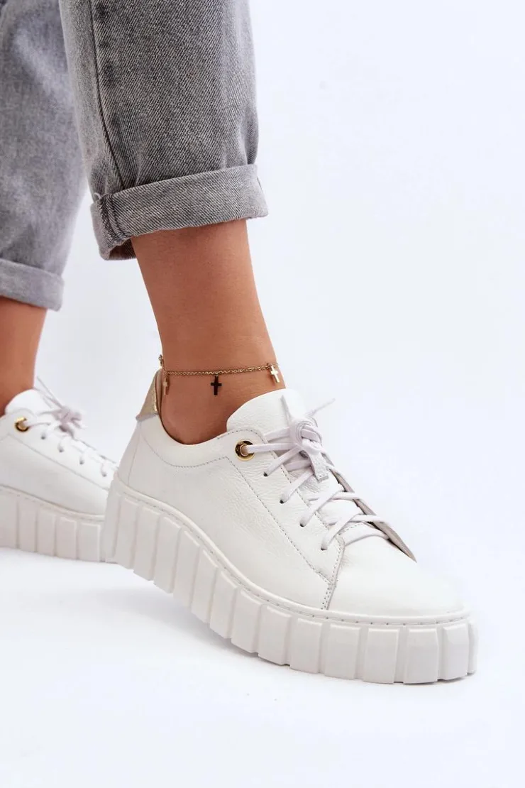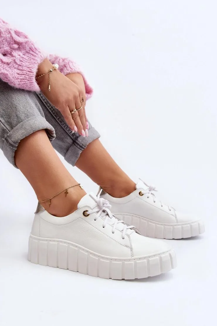 Półbuty damskie wykonane ze skóry naturalnej. Osadzone na grubej podeszwie z gumowego tworzywa. Model klasycznie sznurowany. Noski zaokrąglone. Miękka wkładka ze skóry naturalnej zapewni komfort podczas użytkowania. Idealne do wielu stylizacji. Koniecznie powinnaś je mieć! Przy wyborze rozmiaru prosimy sugerować się tabelą rozmiarów.
