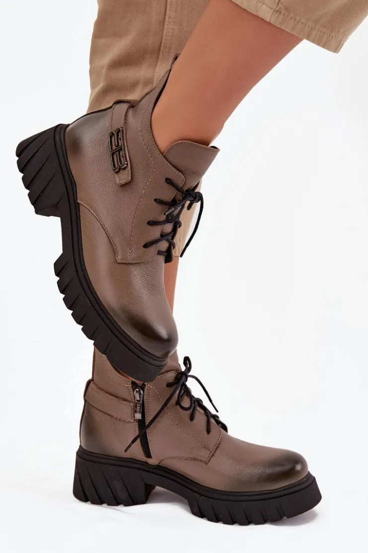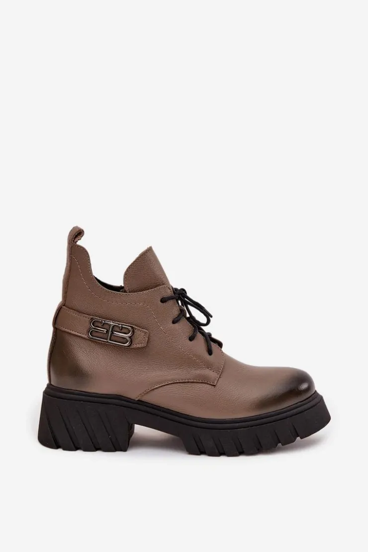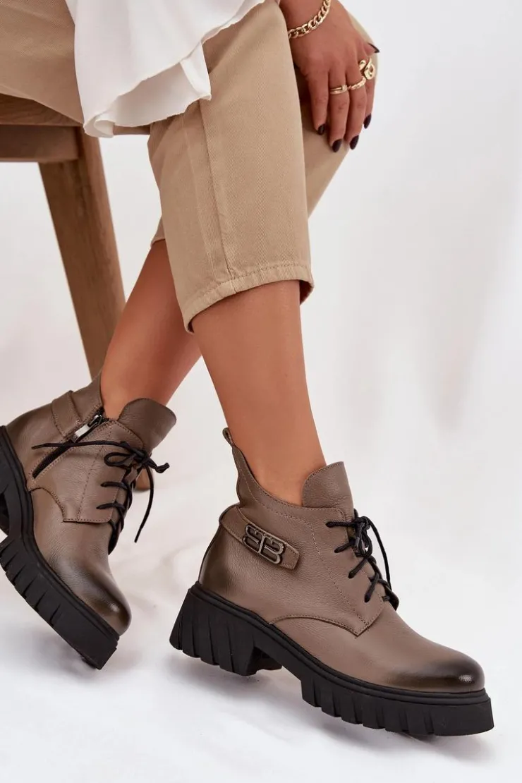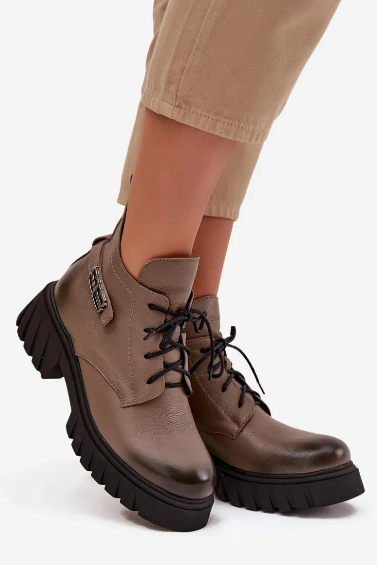 Damskie botki wykonane ze skóry naturalnej. Zapinane na zamek oraz dodatkowo posiadają sznurowanie. Noski zaokrąglone. Wnętrze zostało ocieplone miękkim filcem, który zapewnia ciepło nawet w najchłodniejsze dni. Filc nie tylko chroni przed zimnem, ale także zwiększa komfort noszenia, dzięki swojej miękkości i właściwościom izolacyjnym. To sprawia, że botki są idealnym wyborem na jesienne i zimowe miesiące, gwarantując nie tylko stylowy wygląd, ale także komfort i ochronę przed chłodem. Te botki to doskonałe połączenie klasycznego stylu i nowoczesnych rozwiązań, które sprawdzą się w różnorodnych stylizacjach, od casualowych po bardziej eleganckie. Przy wyborze rozmiaru prosimy sugerować się tabelą rozmiarów.