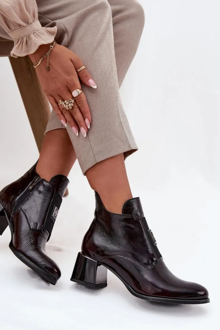 Botki ze skóry naturalnej to połączenie elegancji i wygody. Osadzone na stabilnym obcasie typu klocek, zapewniają komfort przez cały dzień. Wnętrze jest ocieplane, co gwarantuje ciepło w chłodniejsze dni. Z przodu buta znajduje się elastyczna wstawka, która nie tylko ułatwia zakładanie, ale również dodaje subtelnego, modnego akcentu. Zapinane na zamek. Dodatkowo mały ozdobny detal sprawia, że te botki wyróżniają się oryginalnym stylem. Koniecznie powinnaś je mieć! Przy wyborze rozmiaru prosimy kierować się tabelą rozmiarów.