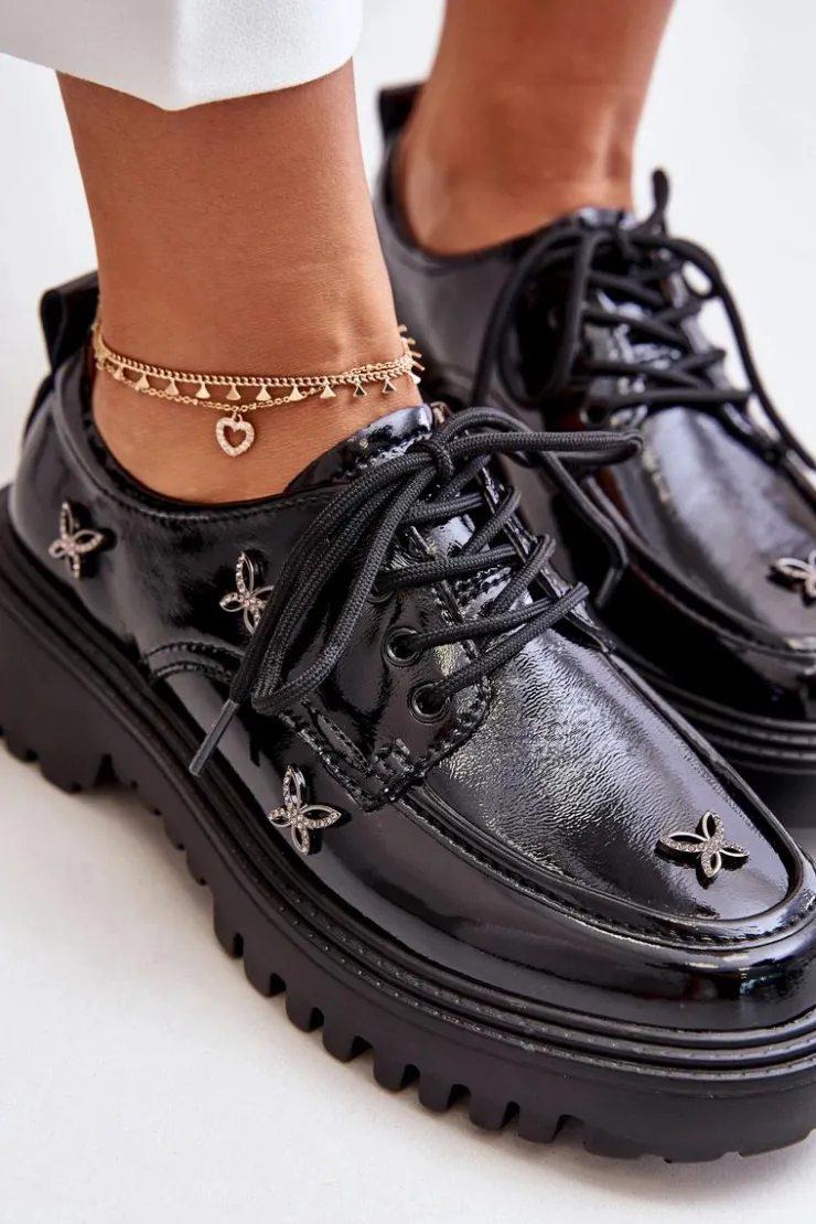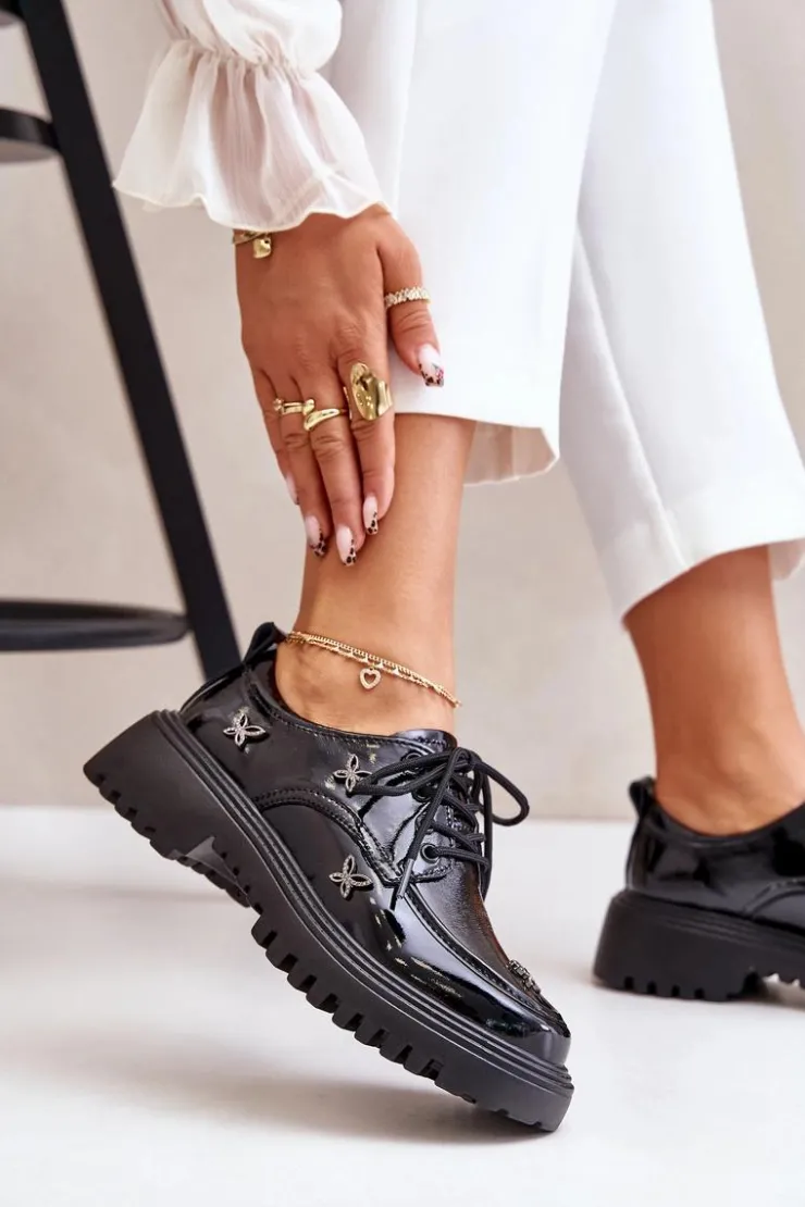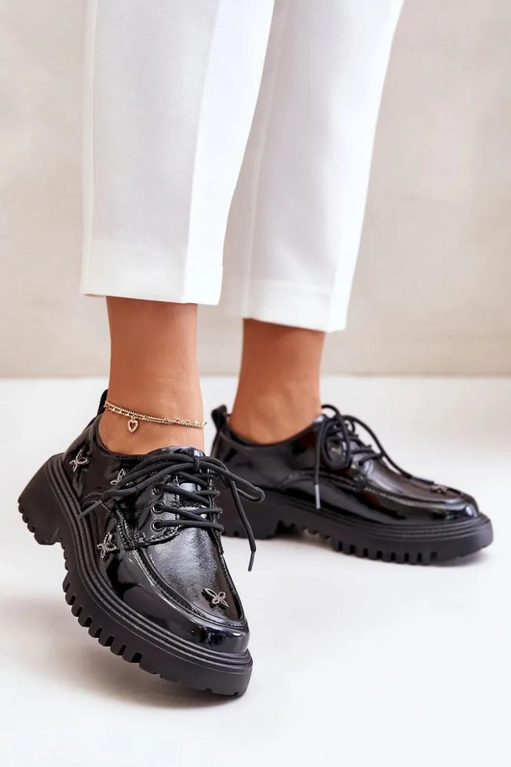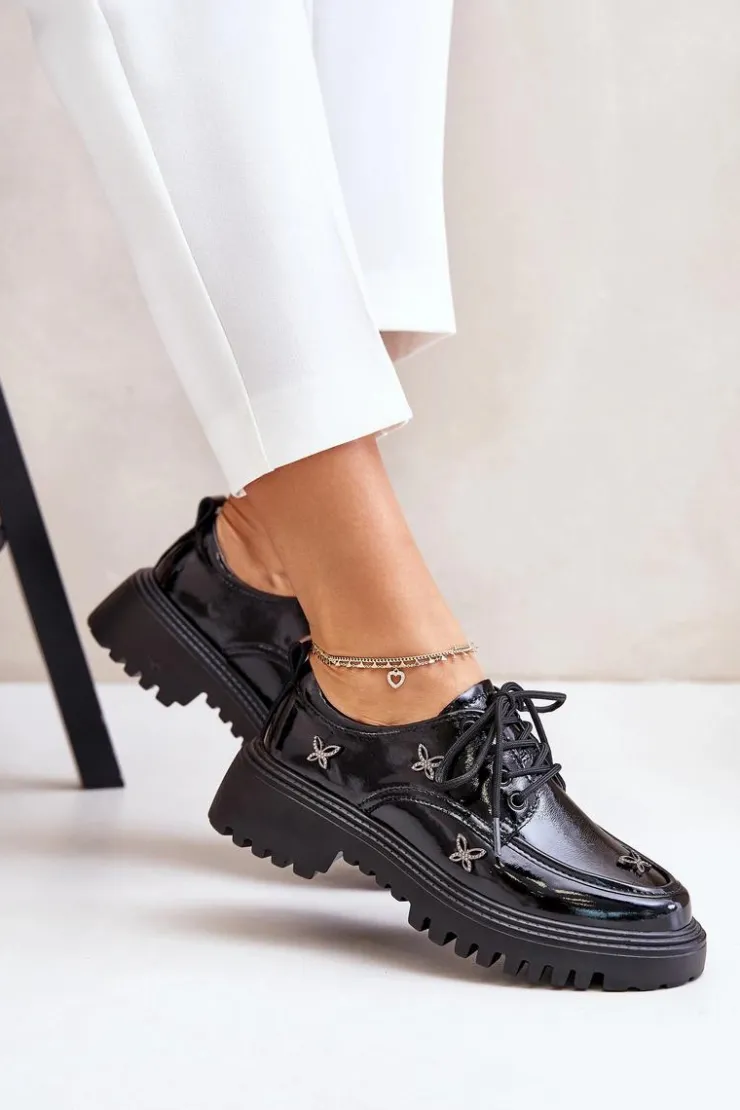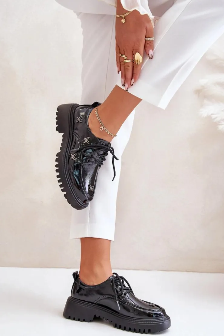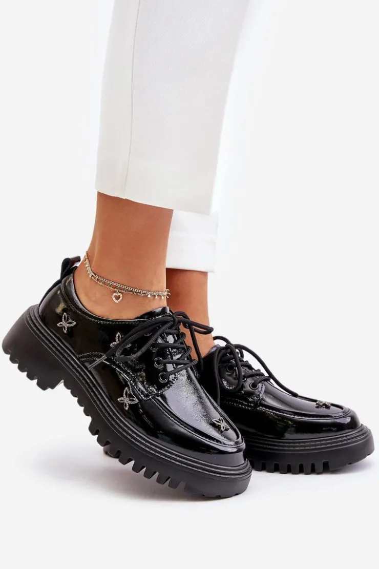 Półbuty damskie wykonane z naturalnej skóry, które zachwycają elegancją i wyrazistymi ozdobami. Model posiada zaokrąglone noski oraz klasyczne sznurowanie, które zapewnia idealne dopasowanie. Idealne zarówno do codziennych stylizacji, jak i na bardziej formalne okazje. Przy wyborze rozmiaru prosimy sugerować się tabelą rozmiarów.