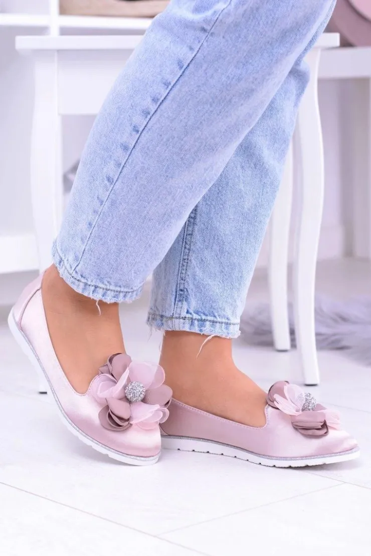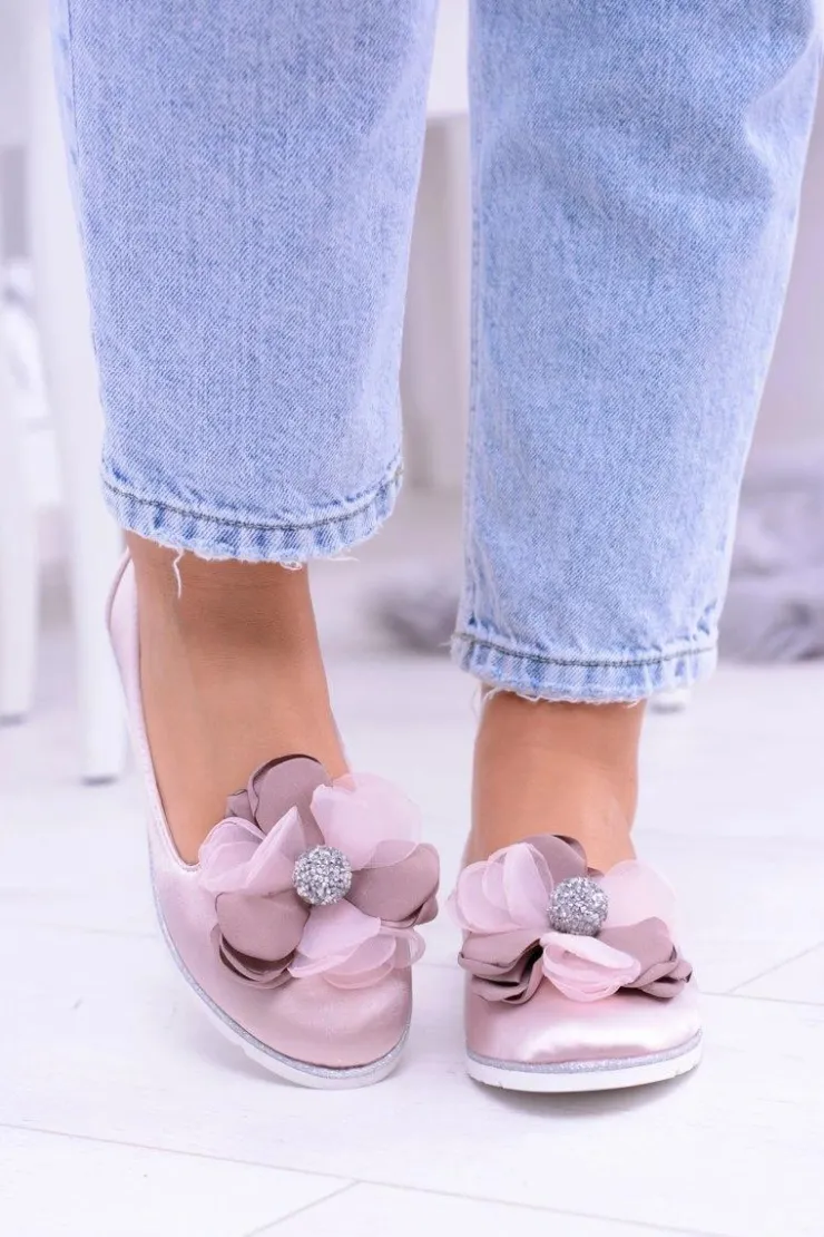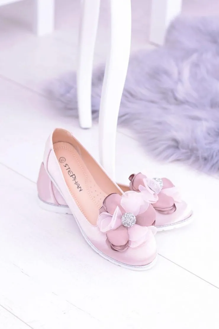 Outlet Boto Aksamitne Różowe Baleriny Z Dużym Kwiatem Fumiko