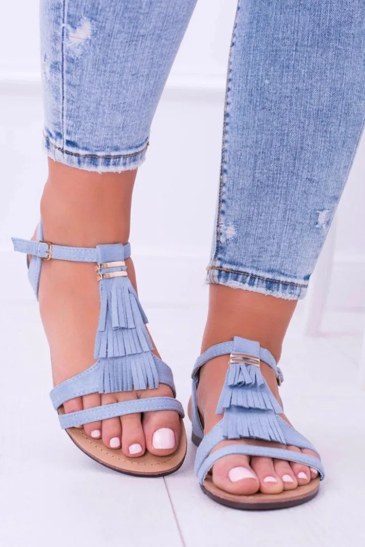 Outlet Boto Błękitne Płaskie Zamszowe Sandały z Frędzlami Viva
