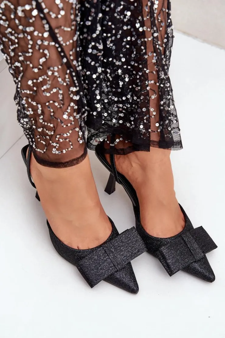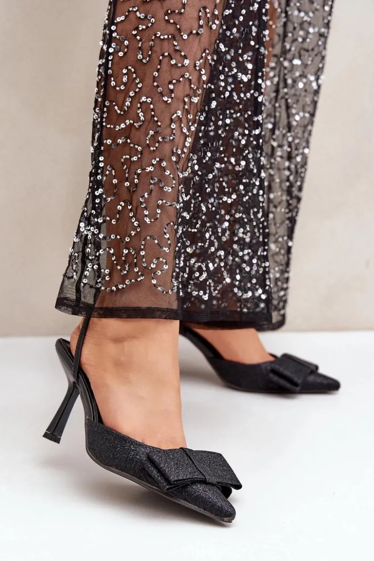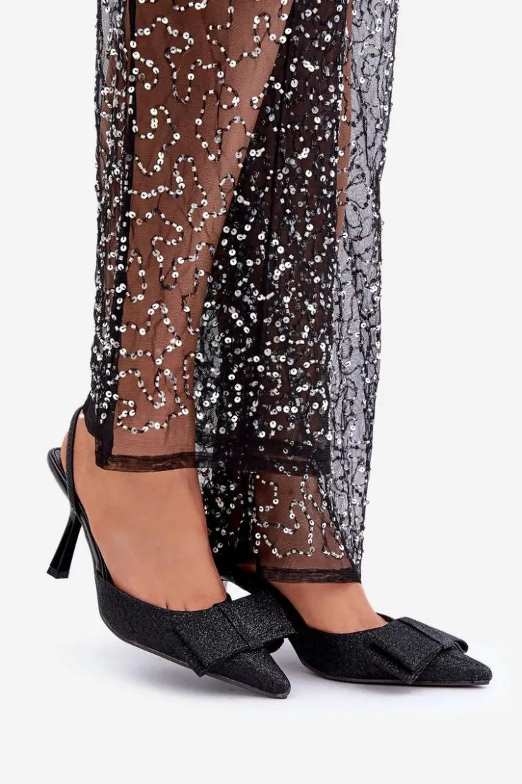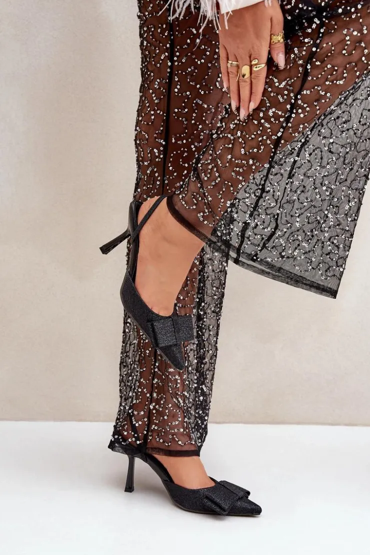 Błyszczące szpilki damskie pokryte efektownym brokatem, które stanowią idealny wybór na Sylwestra i wieczorne wyjścia. Model wyróżnia się elegancką kokardą z przodu, dodającą uroku i szyku. Smukłe szpiczaste noski podkreślają kobiecą sylwetkę, a wysoki obcas wydłuża nogi, zapewniając elegancki wygląd. Te szpilki dodadzą blasku każdej stylizacji, sprawiając, że będziesz błyszczeć w towarzystwie. Idealne dla kobiet ceniących modę i wyrazisty styl! Przy wyborze rozmiaru prosimy sugerować się tabelą rozmiarów.