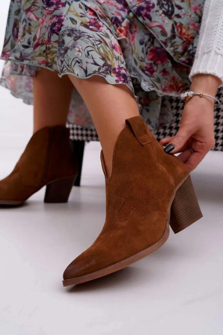Botki to nie tylko buty na chłodne dni. Świetnie sprawdzą się również podczas tworzenia wiosennych stylizacjach. Botki posiadają zamek z boku cholewki ułatwiający zakładanie.. W całości wykonane ze skóry zamszowej. Produkt Polski, co gwarantuje nam komfort oraz wysoką jakość wykonania. Idealne do zwiewnych sukienek oraz jeansowych spodni. Przy wyborze rozmiaru prosimy sugerować się tabelą rozmiarów.