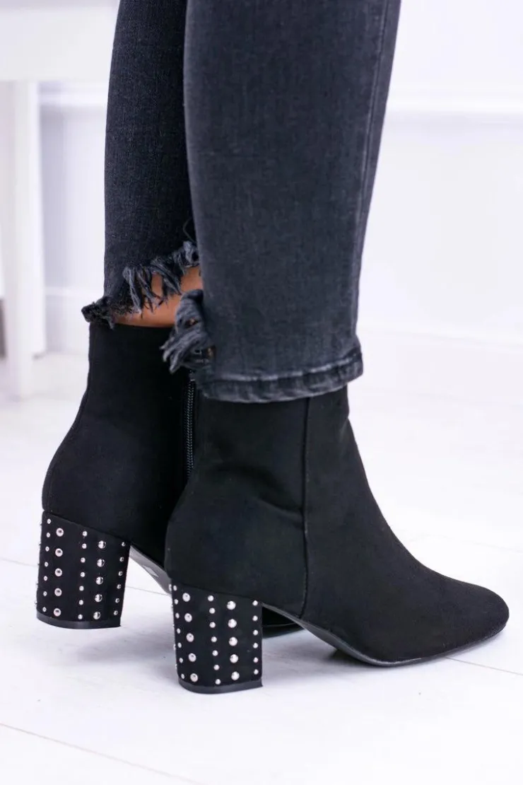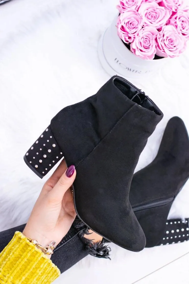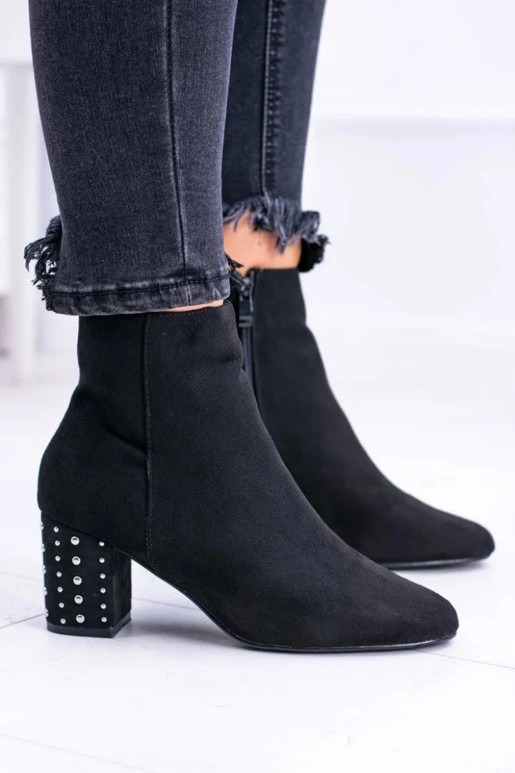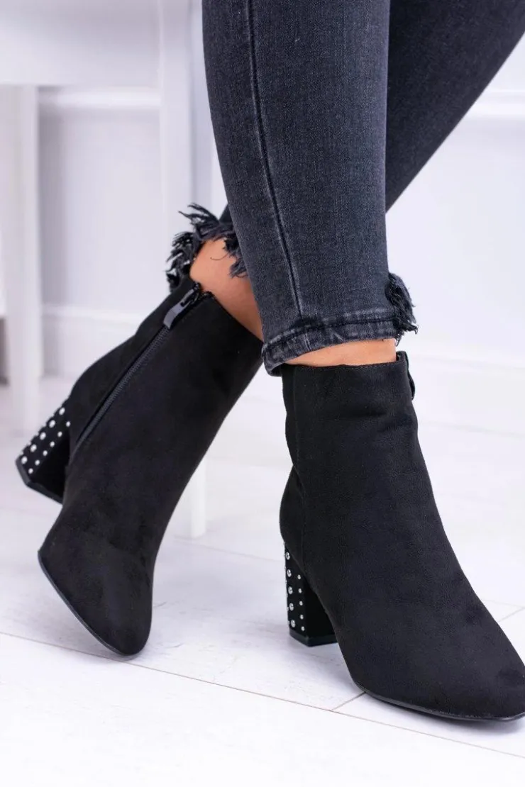 Outlet Boto Ciepłe Damskie Botki Na Słupku Czarne Jokasta