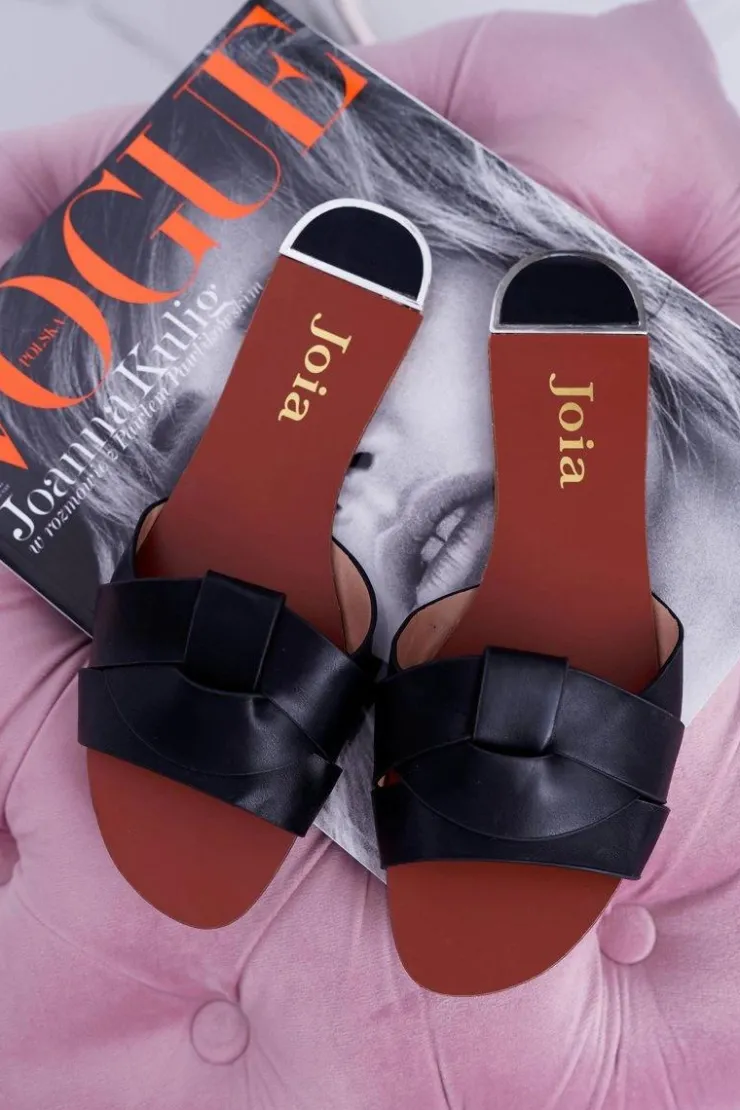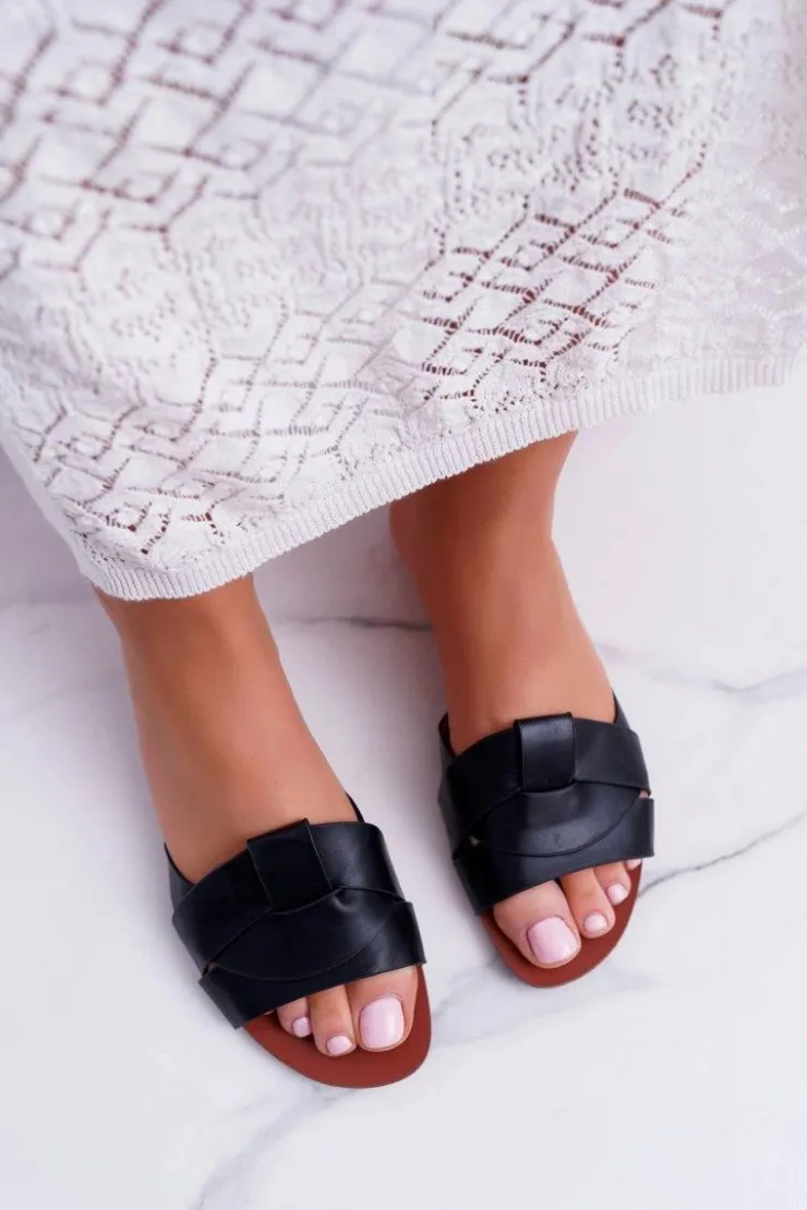 Clearance Boto Damskie Skórzane Klapki Z Ozdobą Czarne Roysa