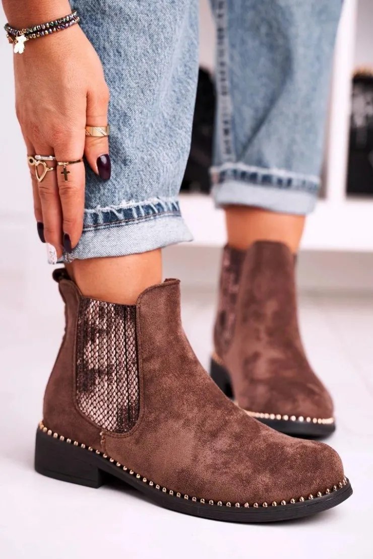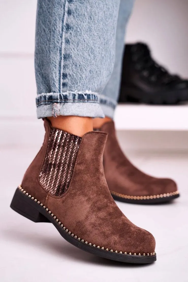 Outlet Boto Damskie Botki Sztyblety Z Dżetami Zamszowe Brązowe Meagan