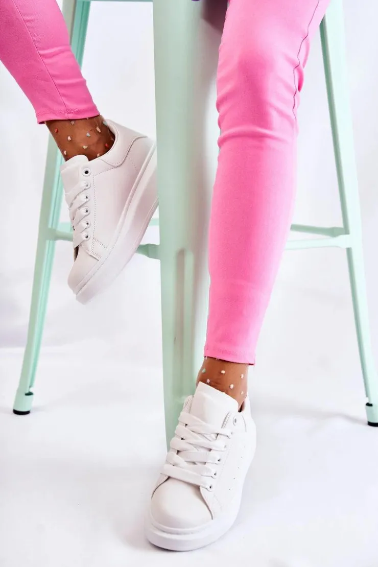 Wygodne sportowe damskie buty zostały wykonane z wysokiej jakości eko skóry z delikatną perforacją na boku cholewki. Wiązane na płaskie sznurowadła. Osadzone na masywnej platformie, która została wykonana z gumowego tworzywa. Wkładka jest wykonana z eko skóry. Nosek zaokrąglony. Model, który pasuje do wielu sportowych stylizacji. Koniecznie sprawdź pozostałe modele obuwia sportowego dostępnego w naszej ofercie! Przy wyborze rozmiaru prosimy kierować tabelą rozmiarów.