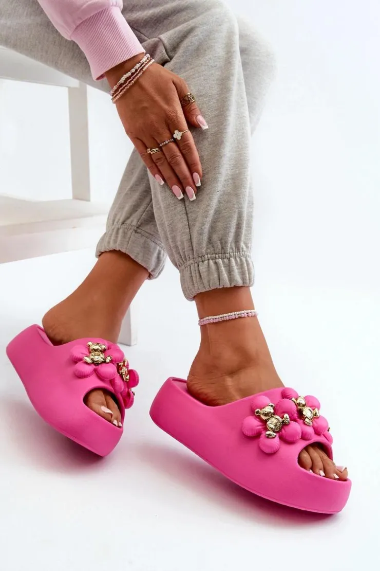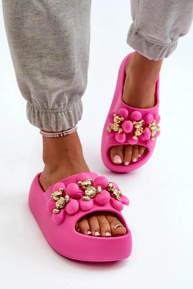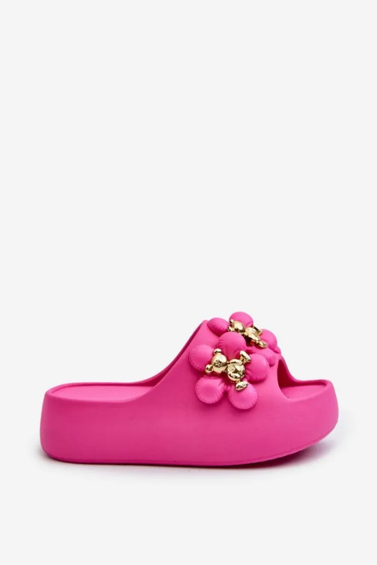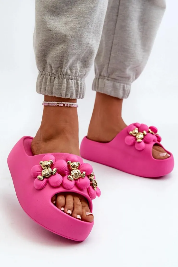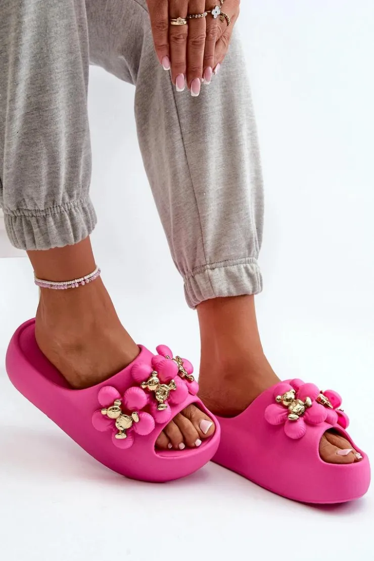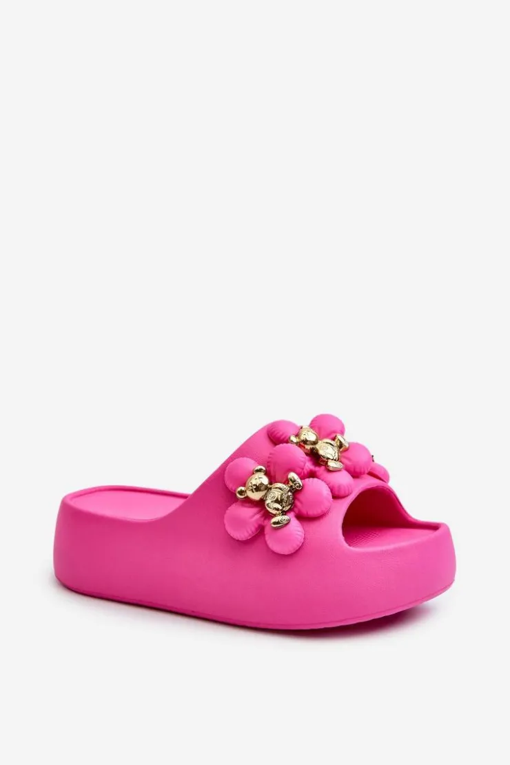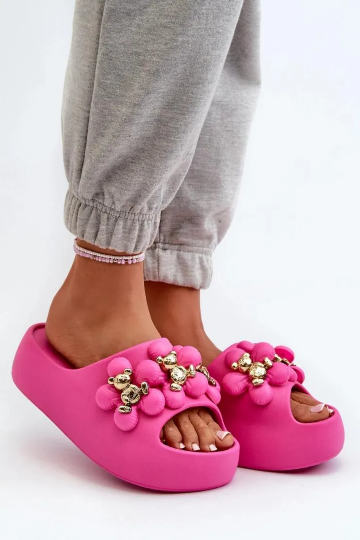 Outlet Boto Damskie Klapki Piankowe Z Ozdobami Na Grubej Podeszwie Fuksja Bremavia Różowy