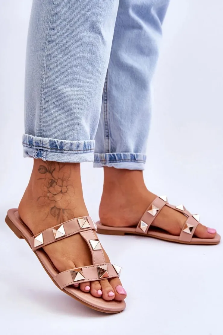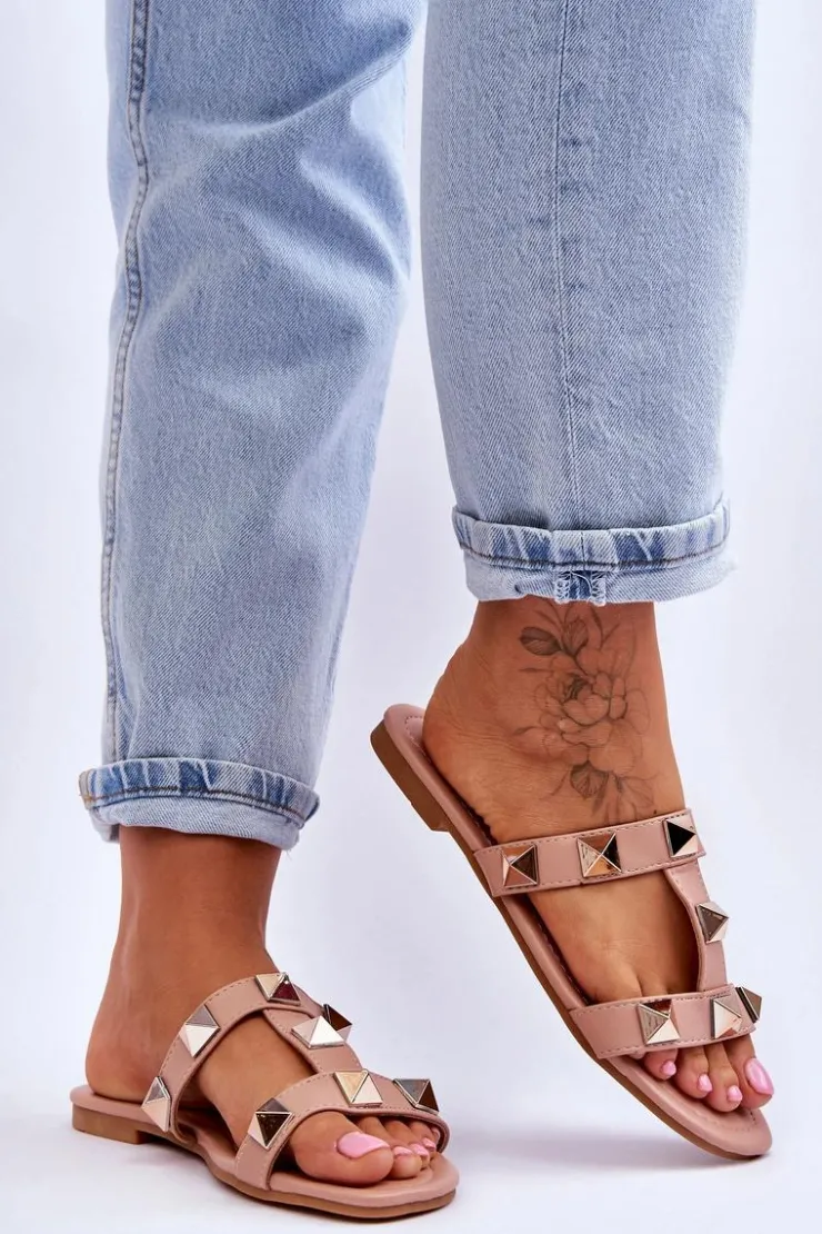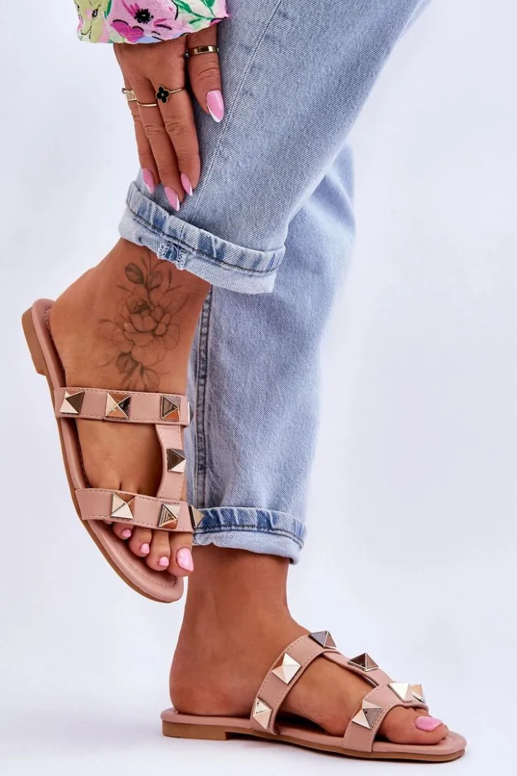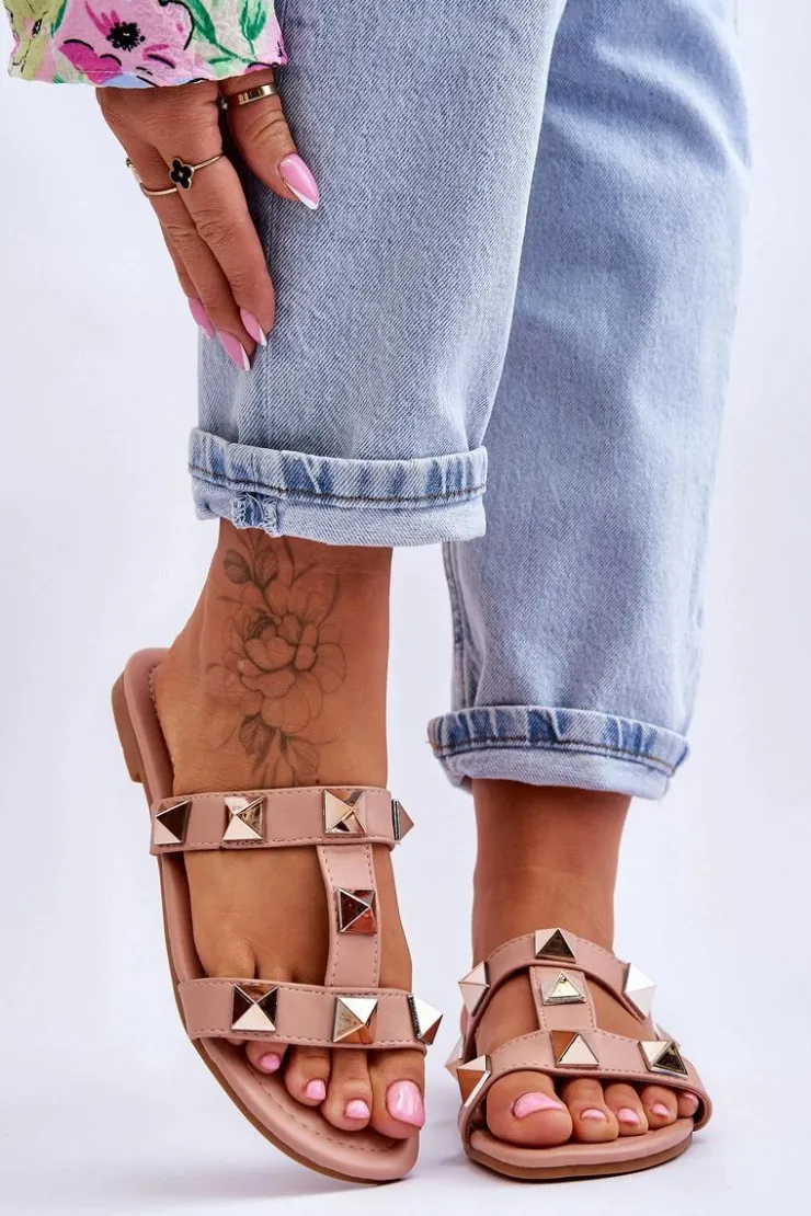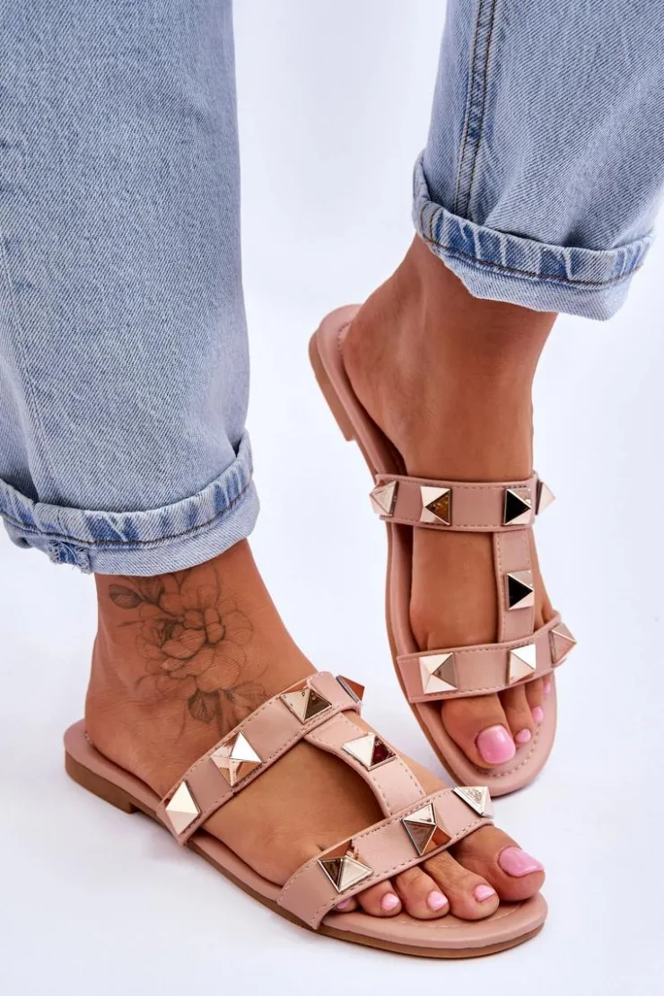 Outlet Boto Damskie Klapki Z Dużymi Ćwiekami Nude Mercure Różowy