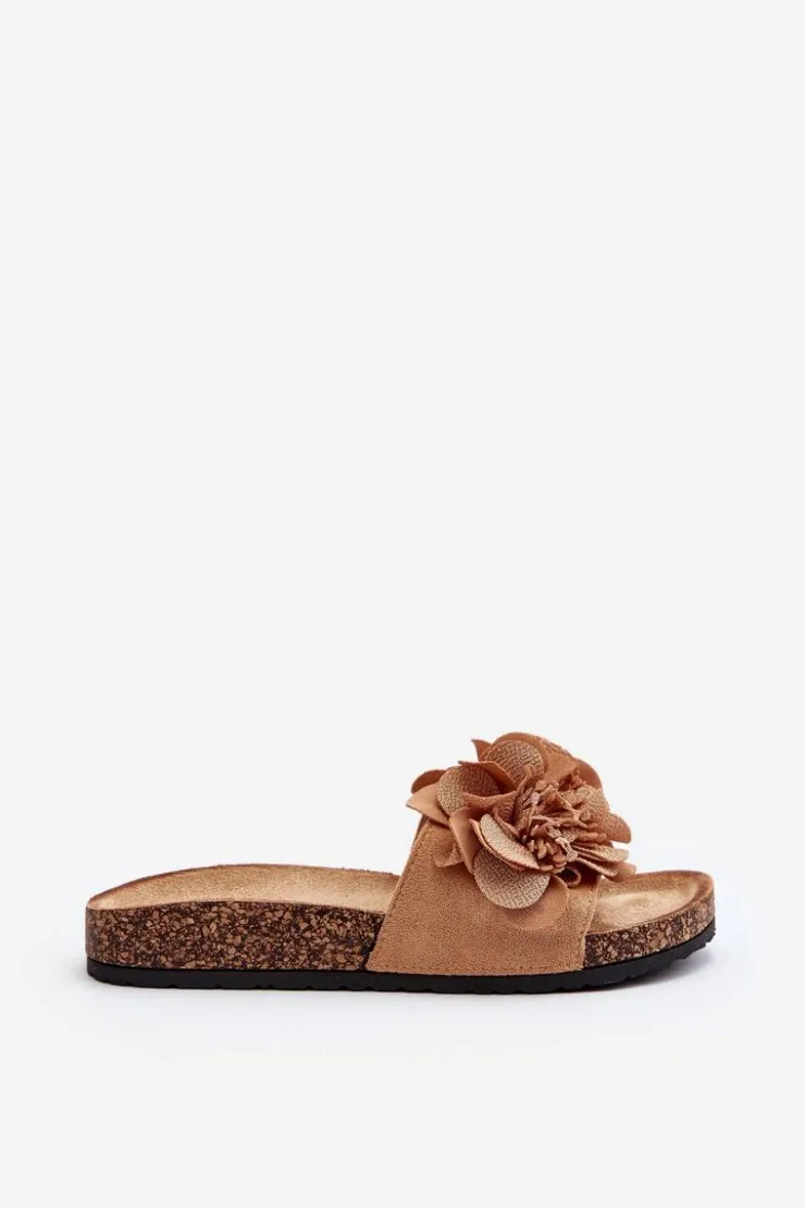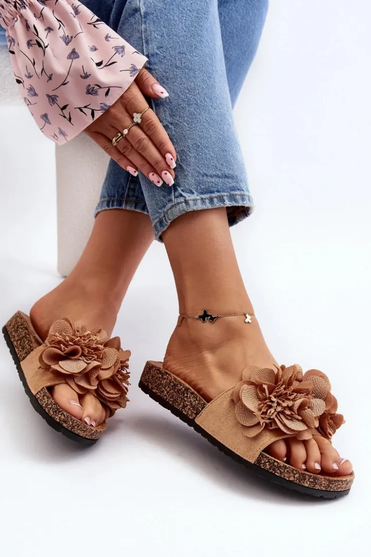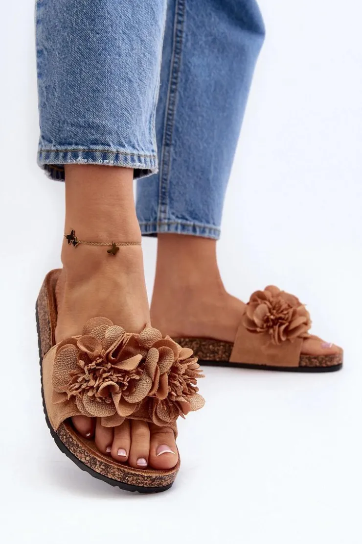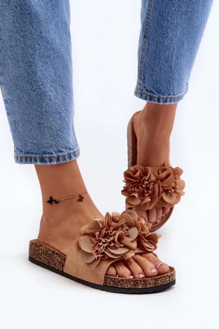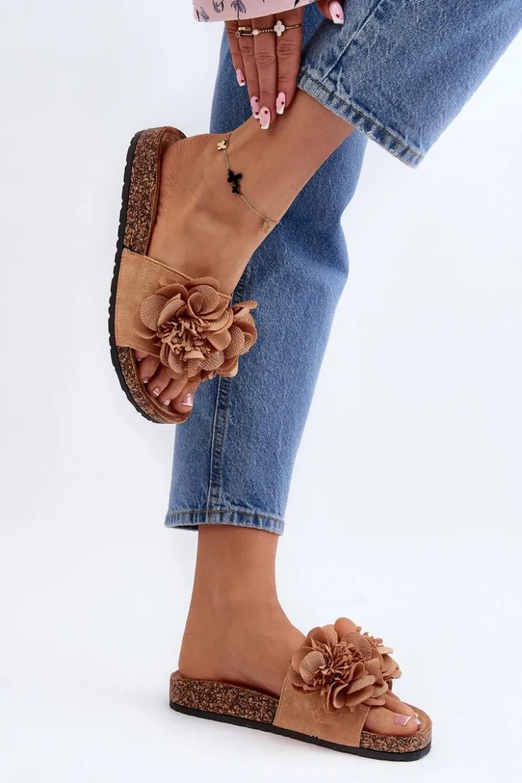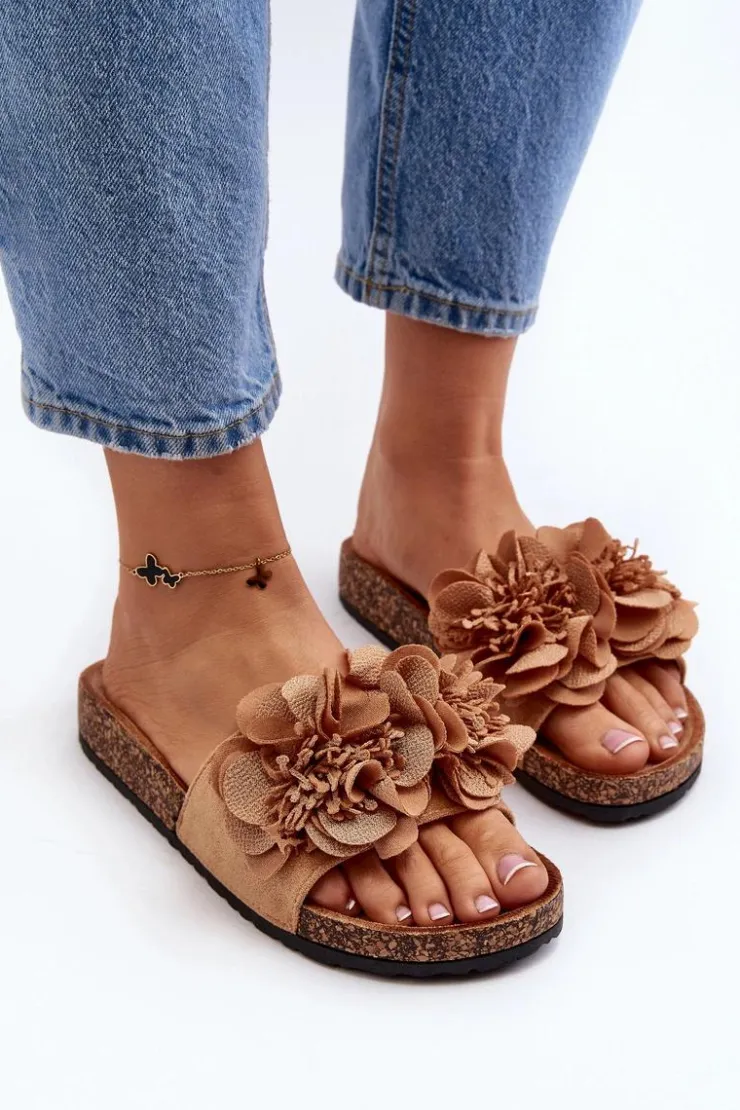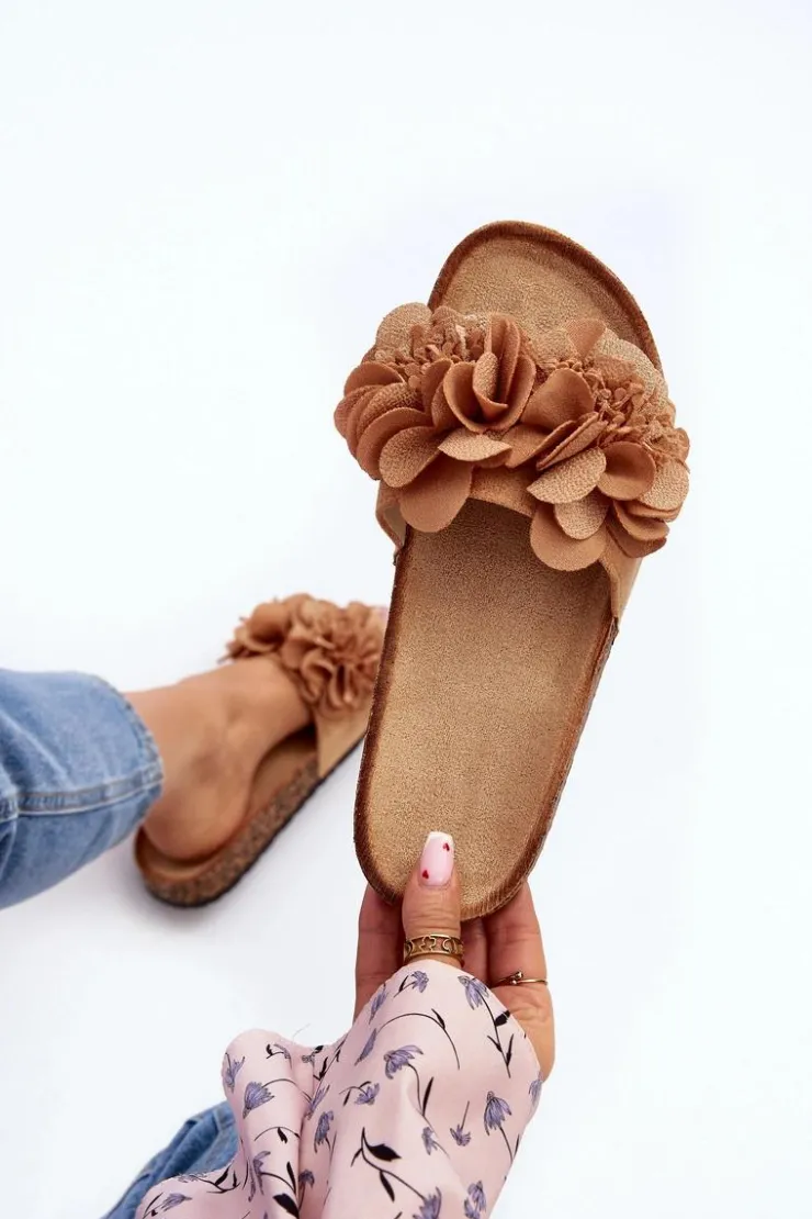 Outlet Boto Damskie Klapki Z Kwiatami Brązowe Lulania
