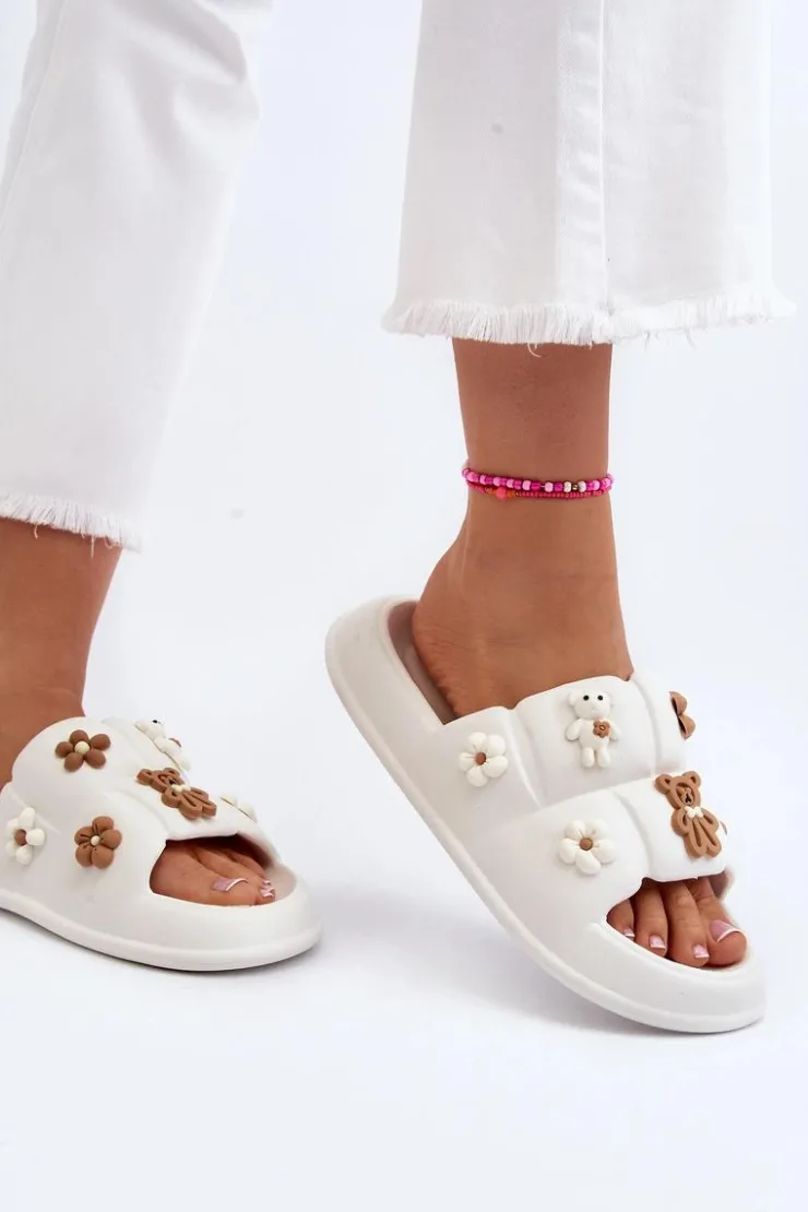 Urocze klapki damskie na szerokim pasku. Wykonane z piankowego tworzywa. Model ten posiada przyciągające uwagę ozdoby z przodu. Idealne do spacerów po plaży lub leniwego popołudnia na tarasie. Koniecznie musisz je mieć! Przy wyborze rozmiaru prosimy sugerować się tabelą rozmiarów.