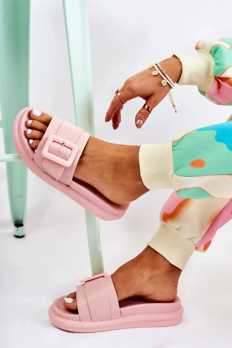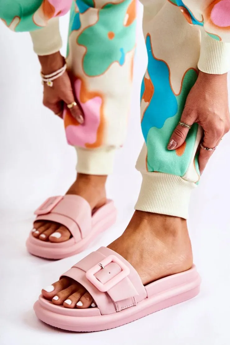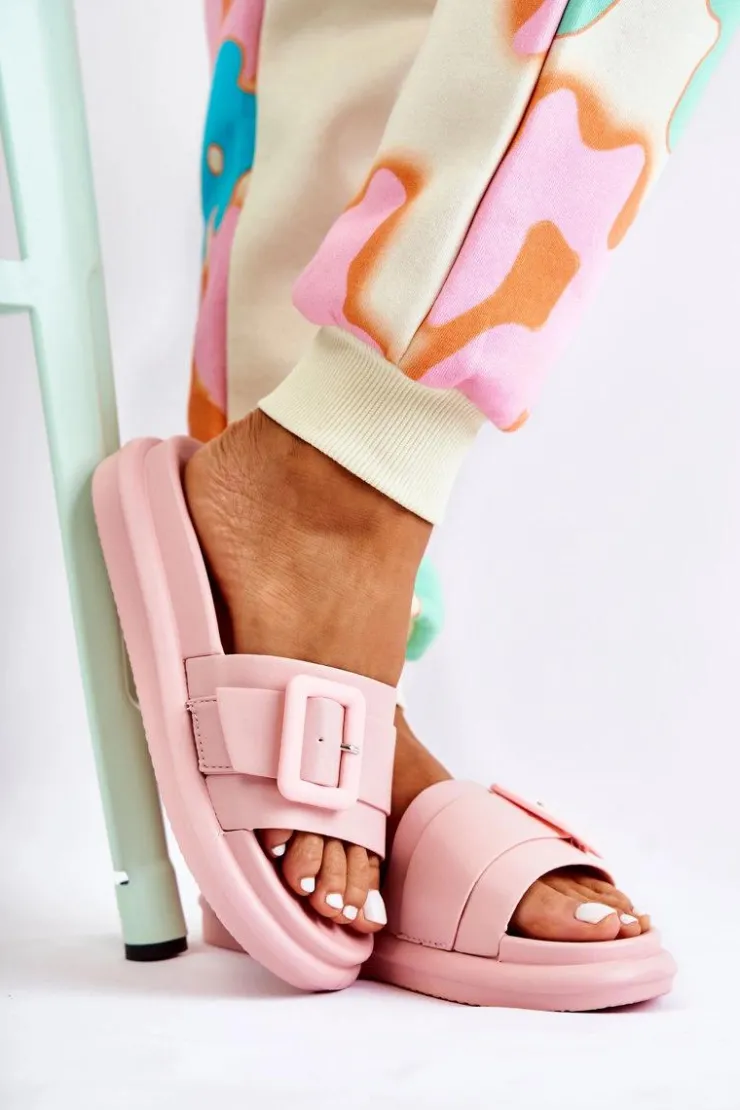Klasyczne i modne damskie klapki zostały wykonane z eko skóry. Wkładka oraz podeszwa zostały wykonane z gumowego tworzywa. Posiadają sprzączkę na pasku z przodu. Te buty to świetna propozycja dla kobiet ceniących sobie komfort w letnie dni. Buty zostały dodatkowo osadzone na platformie. Koniecznie sprawdź całą naszą ofertę klapek damskich. Przy wyborze rozmiaru prosimy sugerować się tabelą rozmiarów.