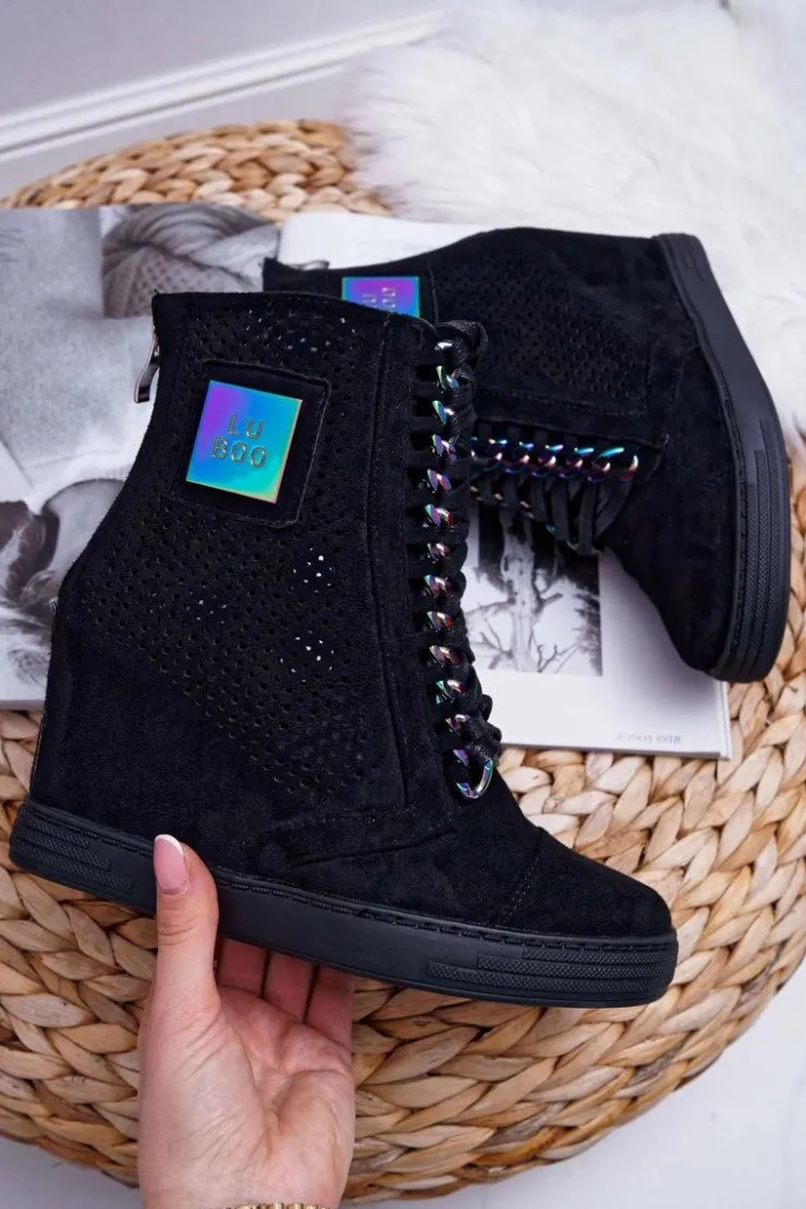 Outlet Boto Damskie Sneakersy Lu Boo Ażurowe Zamszowe Czarne Clamma
