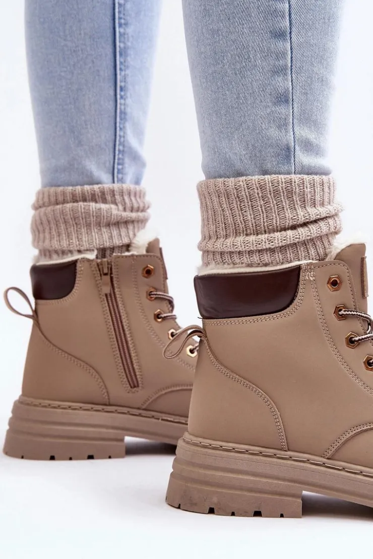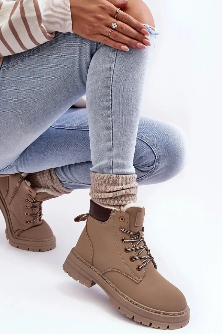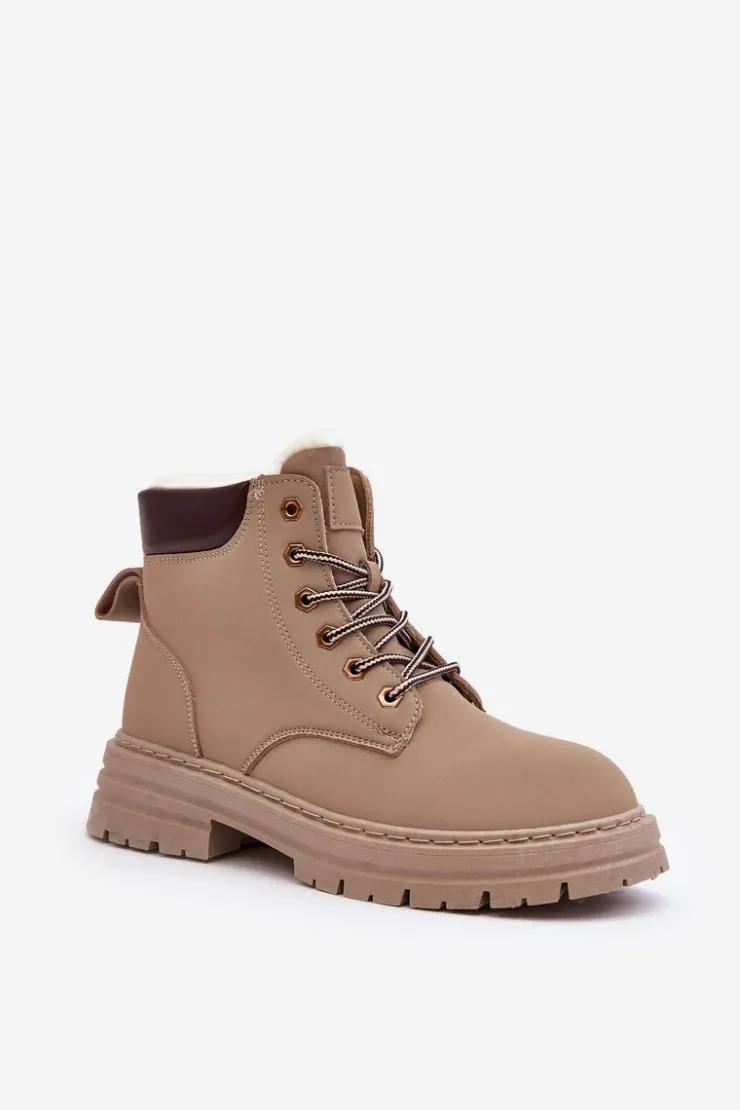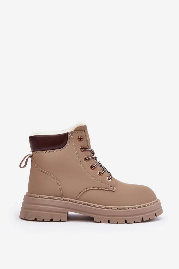 Klasyczne trapery damskie wykonane z eko skóry. Osadzone na platformie i płaskim obcasie. Zapinane na suwak z boku oraz dodatkowo posiadają sznurowanie. Środek ocieplony grubym futerkiem. Ten model traperów zachwyci każdego! Przy wyborze rozmiaru prosimy sugerować się tabelą rozmiarów.
