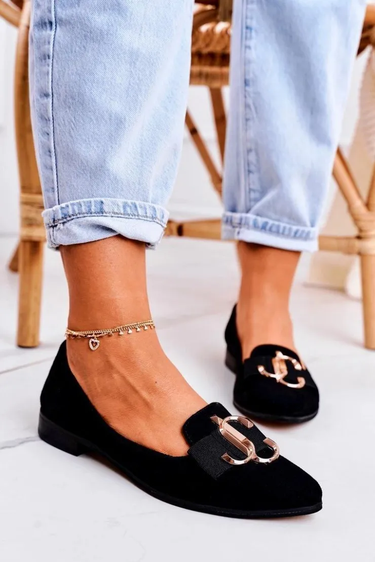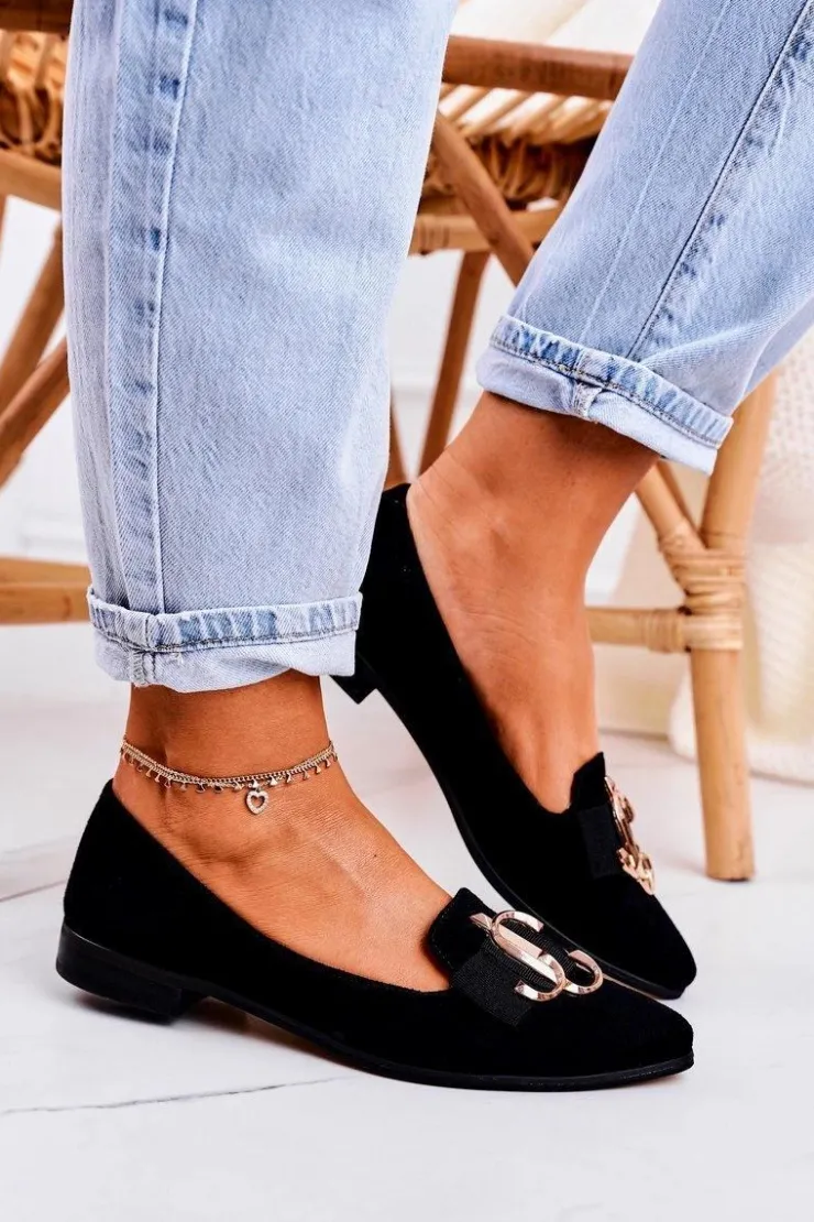 Outlet Boto Damskie Zamszowe Mokasyny Baleriny Czarne Mary-Jane