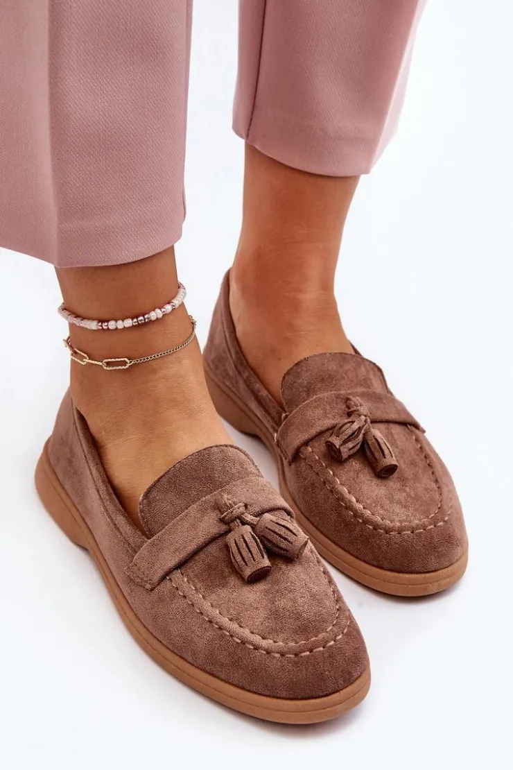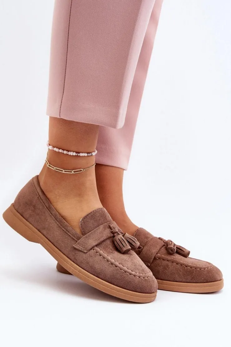 Mokasyny to absolutny hit tego sezonu! Wykonane z eko zamszu, prezentują się nie tylko stylowo, ale także są przyjemne w noszeniu. Zaokrąglony nosek dodaje im uroku, a miękka wkładka z eko skóry zapewnia niezrównany komfort, nawet podczas długiego noszenia. Osadzone na płaskim obcasie, będą doskonałym uzupełnieniem wielu różnorodnych stylizacji! Przy wyborze rozmiaru prosimy sugerować się tabelą rozmiarów.