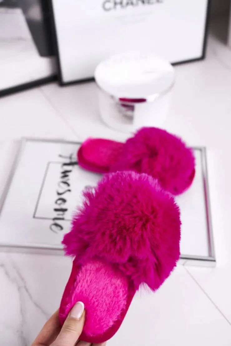 Outlet Boto Dziecięce Papcie Klapki z Futerkiem Fuksja Snow Ball