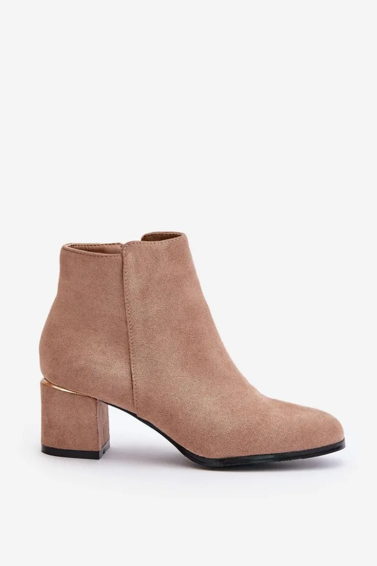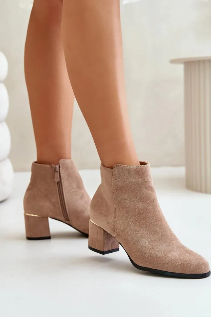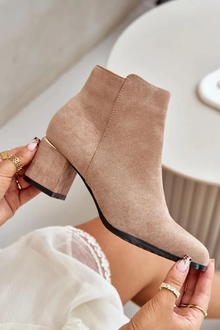 Klasyczne botki wykonane z eko zamszu, które wyróżniają się eleganckim i ponadczasowym stylem. Zapinane na zamek, co ułatwia ich zakładanie i zdejmowanie, oferują wygodę i praktyczność. Zaokrąglone noski dodają im subtelności, czyniąc je idealnym dodatkiem do wielu różnych stylizacji. Przy wyborze rozmiaru prosimy sugerować się tabelą rozmiarów.