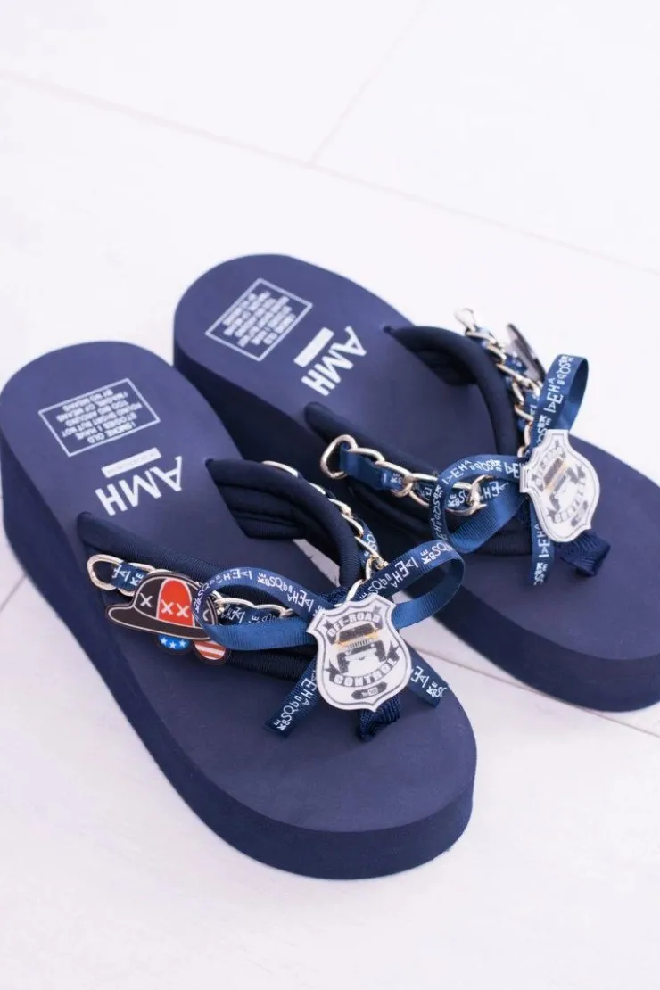 Outlet Boto Granatowe Ekstrawaganckie Klapki na Koturnie Shock