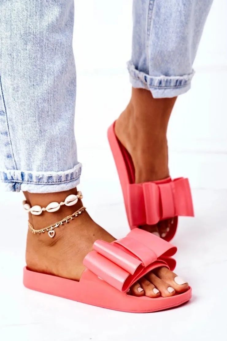 Gumowe klapki damskie z kokardą. Buty posiadają miękką wkładkę ze skóry ekologicznej. Przy wyborze rozmiaru prosimy sugerować się tabelą rozmiarów. 2 Gatunek. Na łączeniu podeszwy widoczny jest klej.