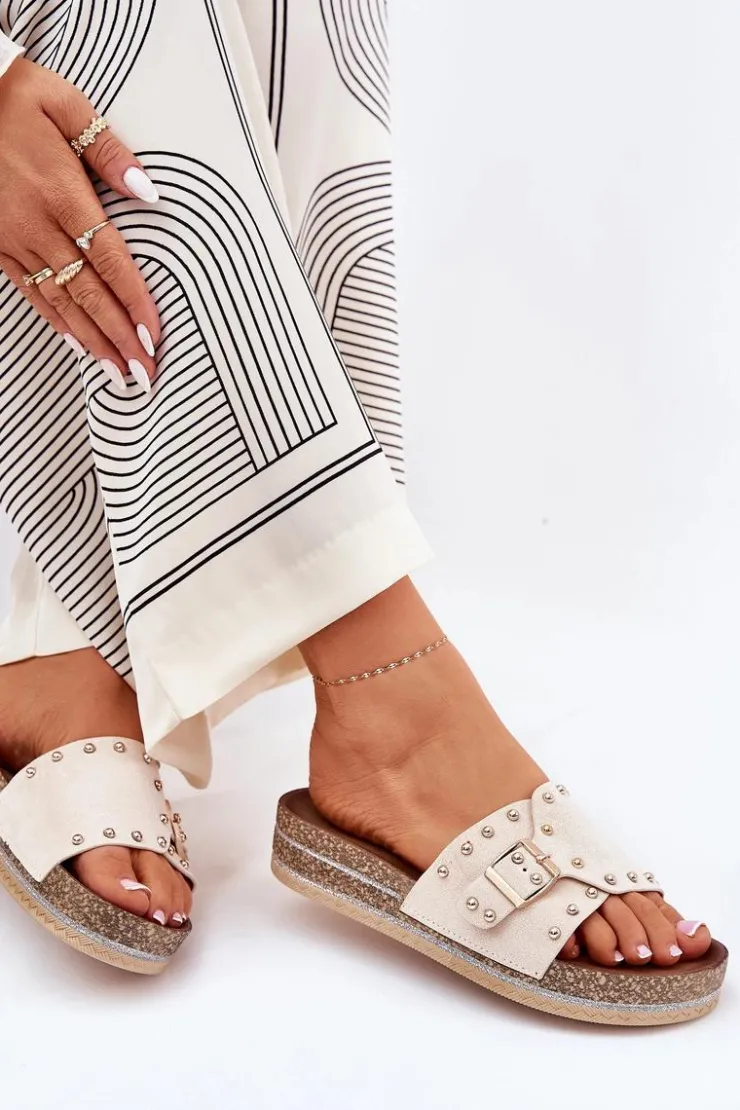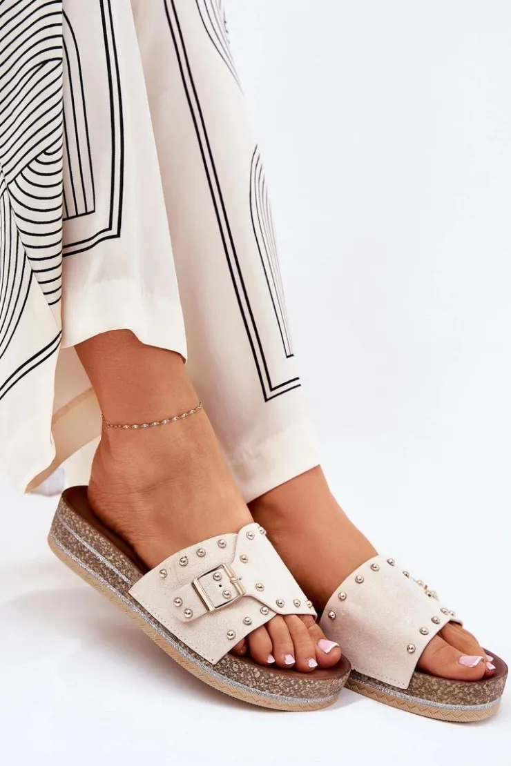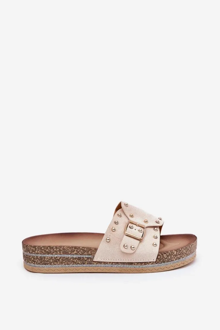 Stylowe klapki damskie z eko zamszu, ozdobione klamrą i ćwiekami, które nadają im nowoczesnego i odważnego charakteru. Osadzone na platformie z brokatem, które wprowadzają do każdej stylizacji subtelny blask. Doskonałe na letnie dni, te klapki łączą wygodę z modnym wyglądem, świetnie pasując do sukienek, spódnic i spodni. Przy wyborze rozmiaru rosimy sugerować się tabelą rozmiarów.
