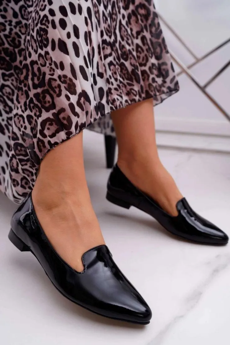 Outlet Boto Mokasyny Damskie Lakierowane Loafery Czarne Sinedos