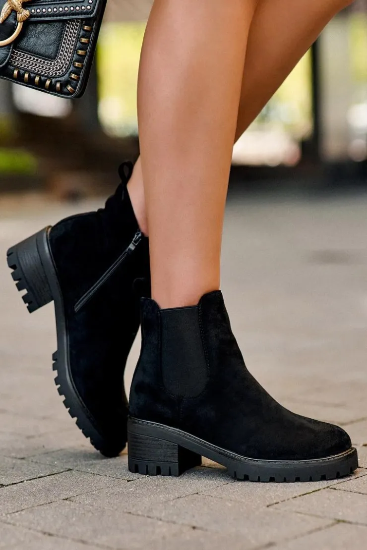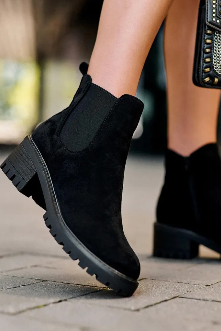 Outlet Boto Niskie Klasyczne Zamszowe Botki Sztyblety Czarne Lalyllis
