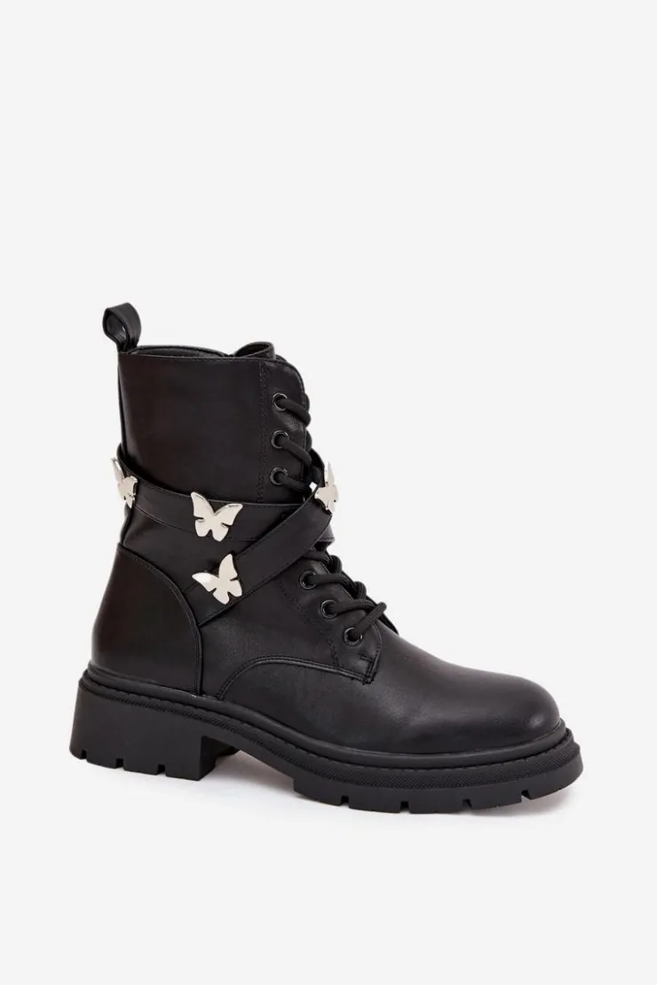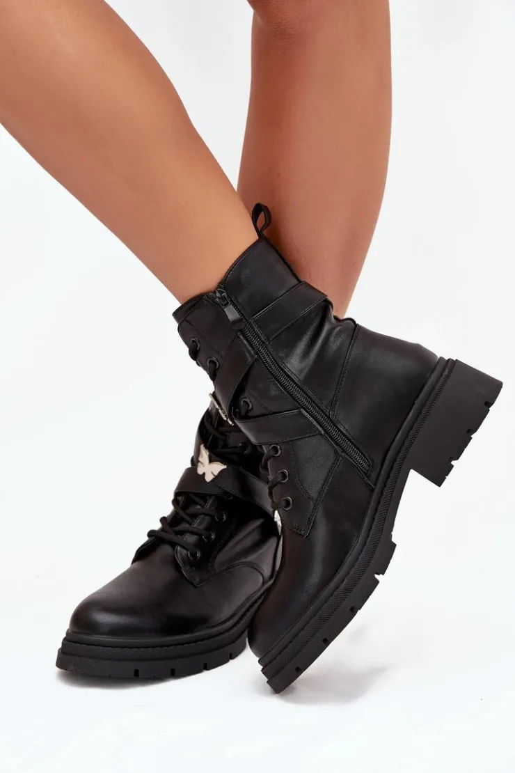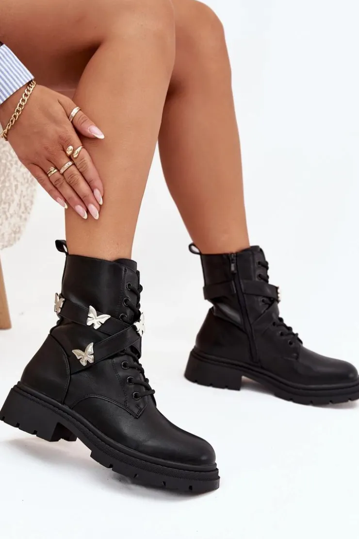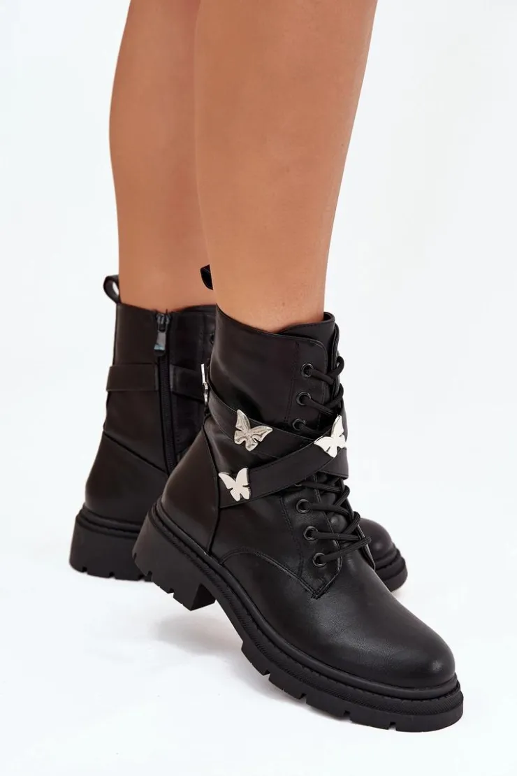 Botki workery damskie wykonane z eko skóry to modny i praktyczny wybór na chłodniejsze dni. Model sznurowany i zapinany na zamek gwarantuje wygodę zakładania oraz dobre dopasowanie do stopy. Wnętrze ocieplone kocem obuwniczym zapewnia komfort i ciepło podczas noszenia. Stylowym akcentem jest pasek ze srebrnymi przypinkami, który nadaje całości nowoczesnego, wyrazistego charakteru. To idealne obuwie na co dzień, świetnie komponujące się z casualowymi stylizacjami. Przy wyborze rozmiaru prosimy sugerować się tabelą rozmiarów.