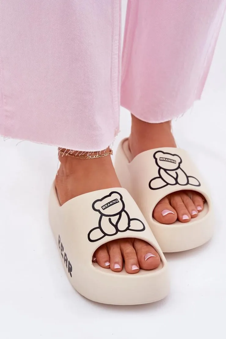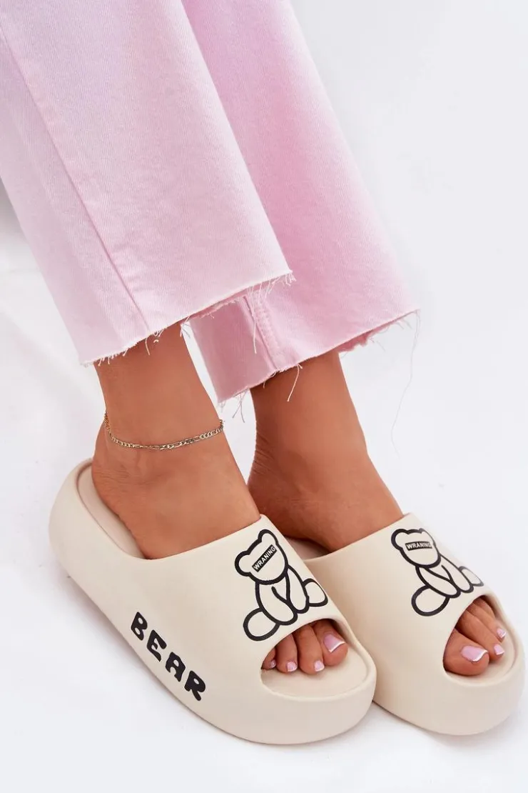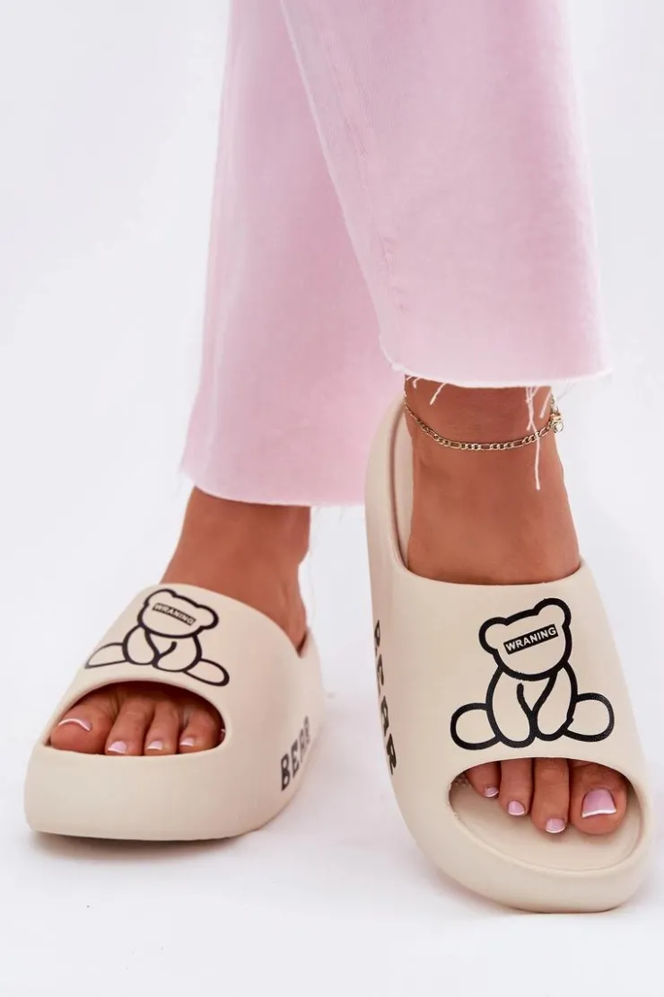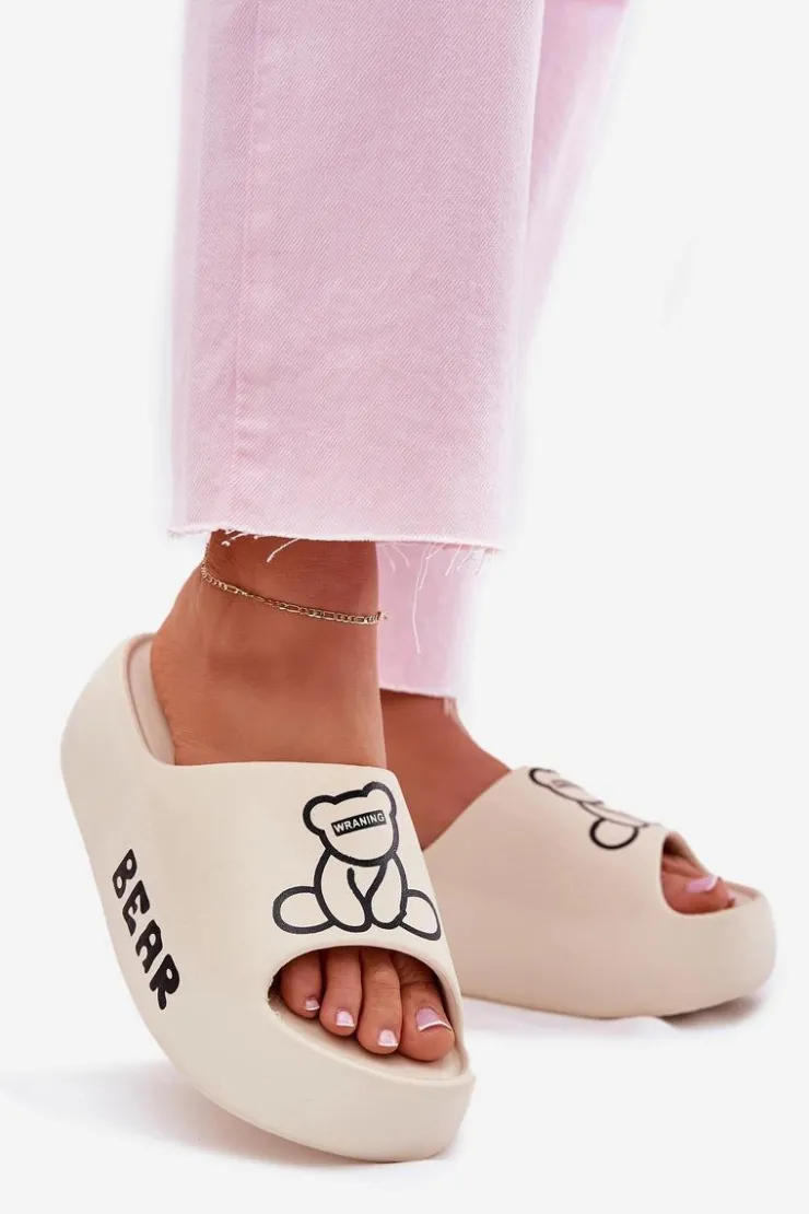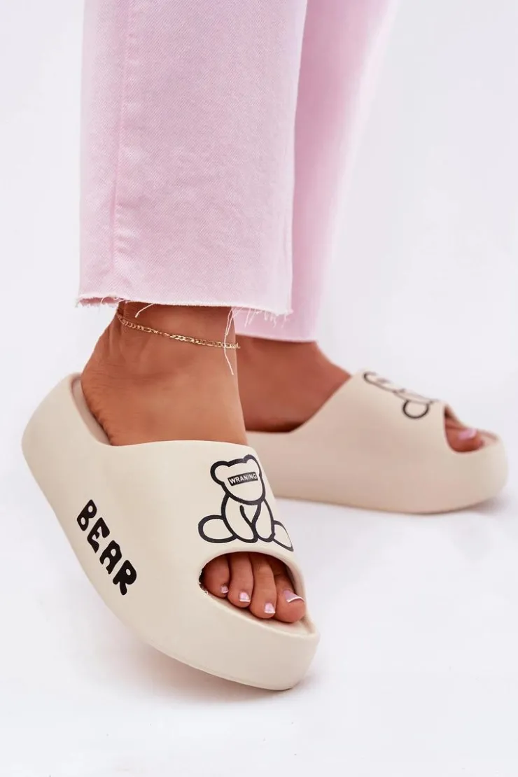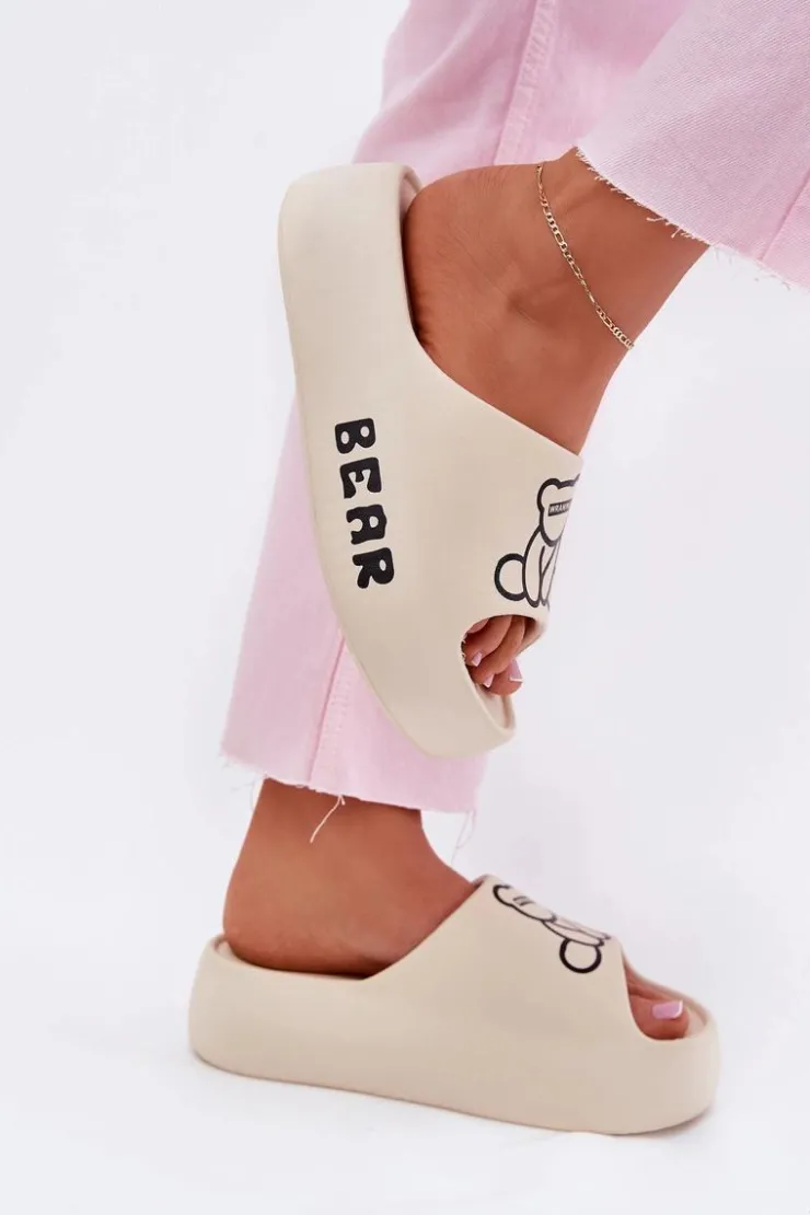 Outlet Boto Piankowe Klapki Damskie Na Masywnej Podeszwie Z Misiem Jasnobeżowe Lamira