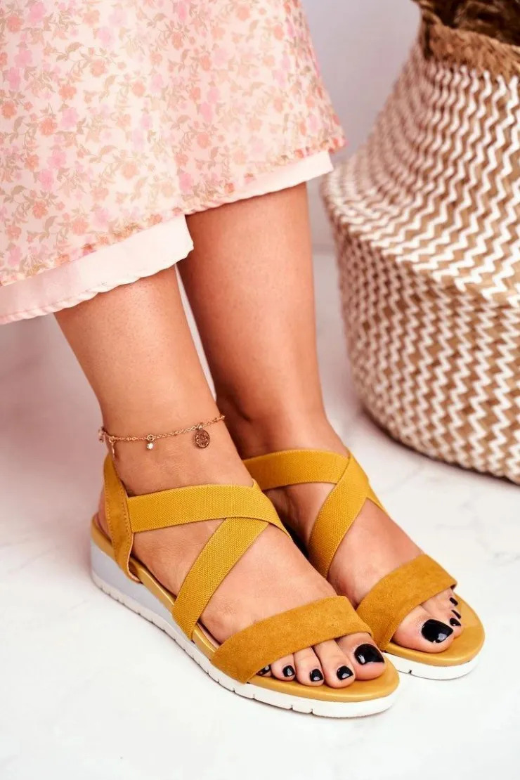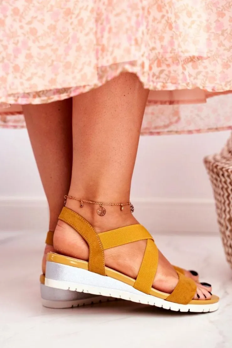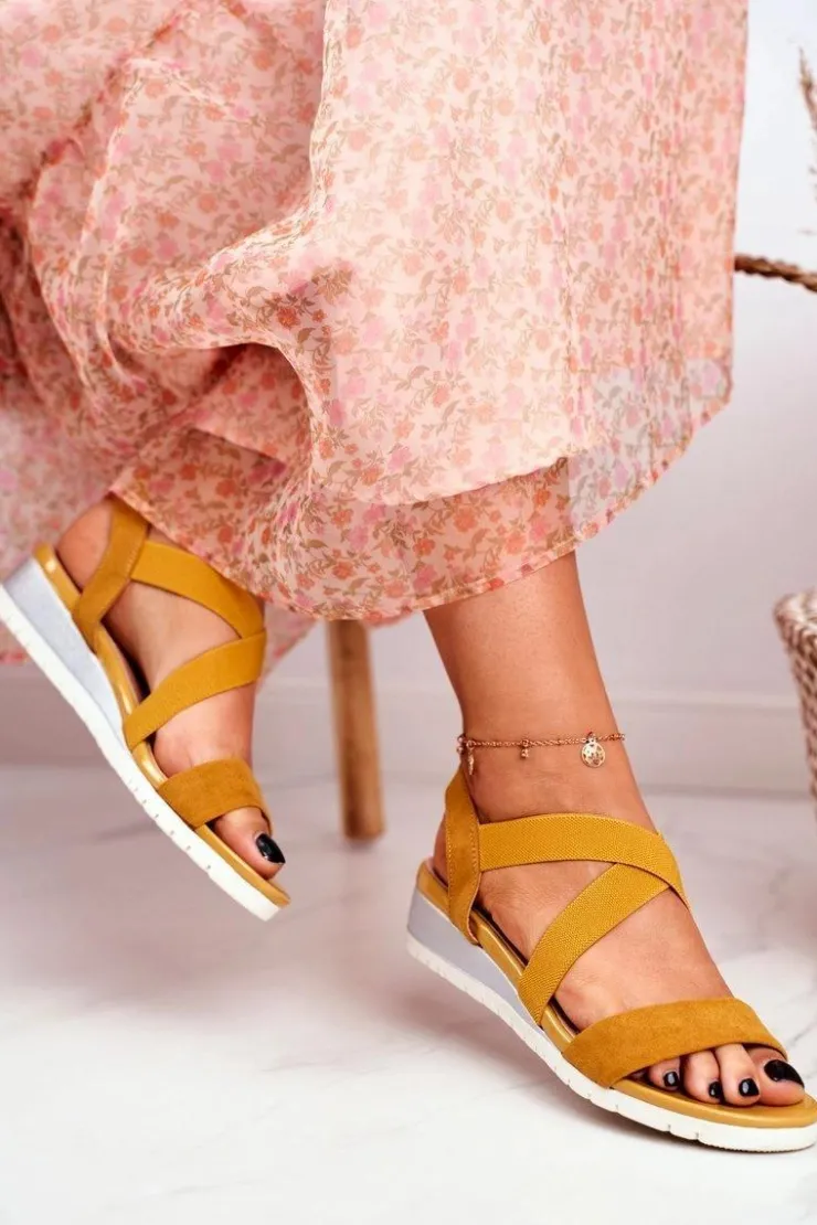 Outlet Boto Sandałki Damskie Na Koturnie Żółte Wsuwane Harper