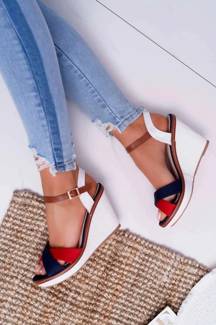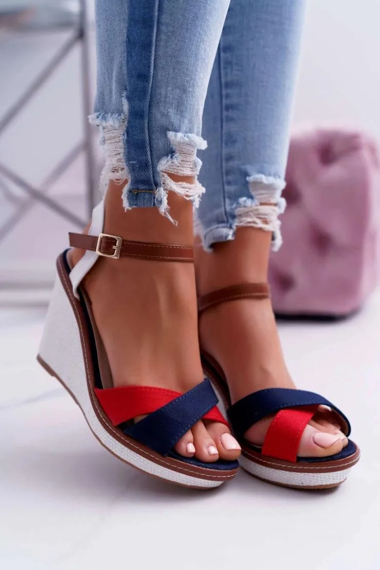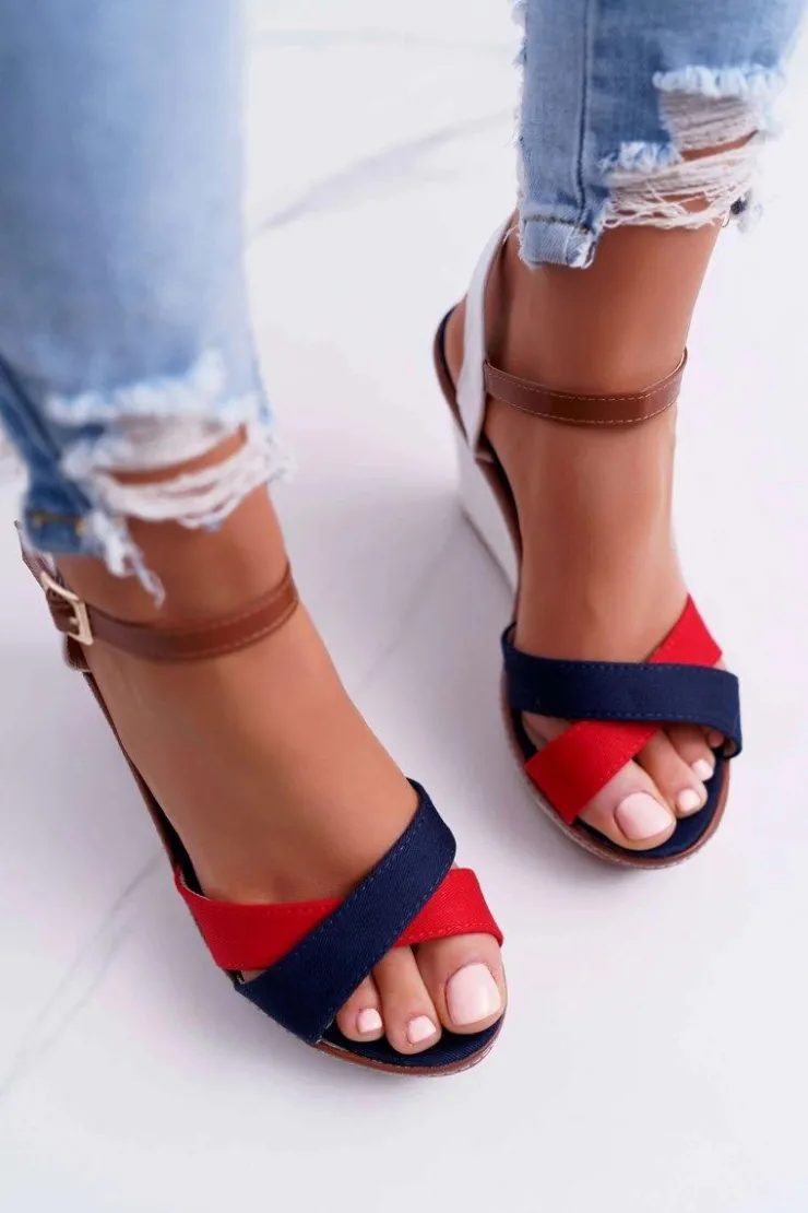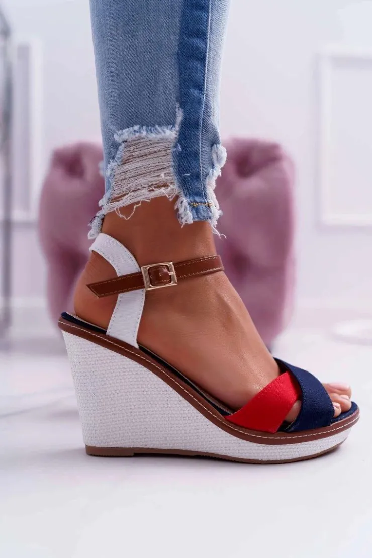 Outlet Boto Sandały Damskie Na Koturnie Granatowe Kaisha