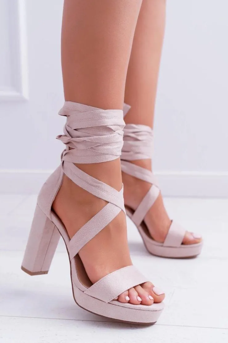 Outlet Boto Sandały Damskie Na Słupku Platforma Wiązane Beżowe LaFiesta
