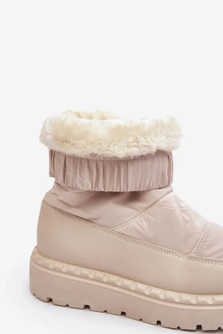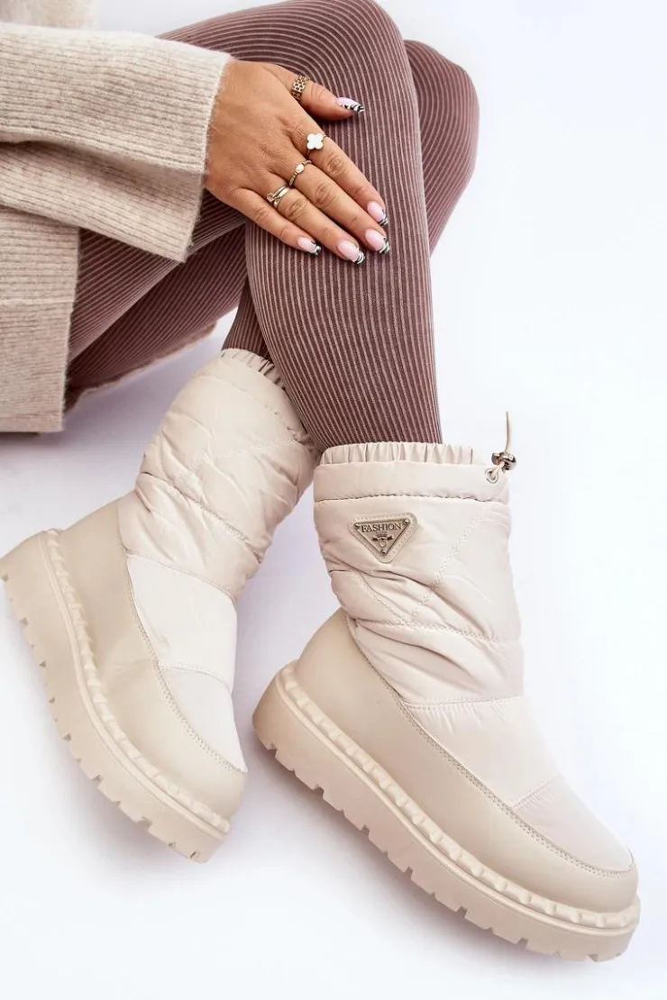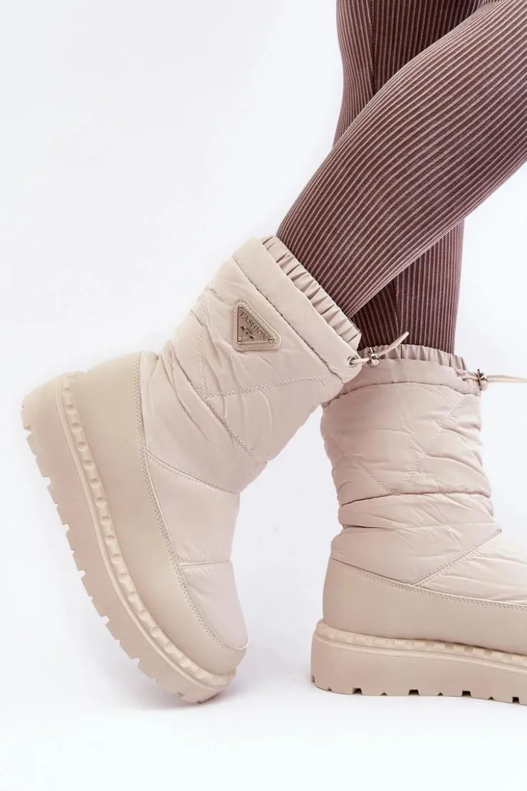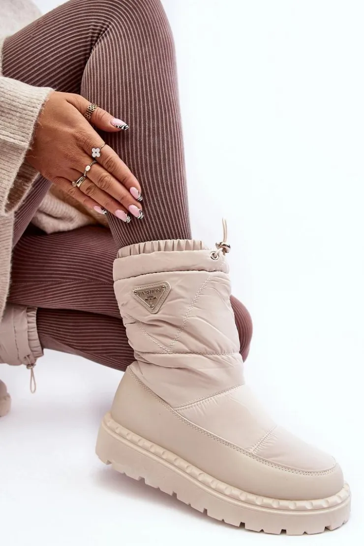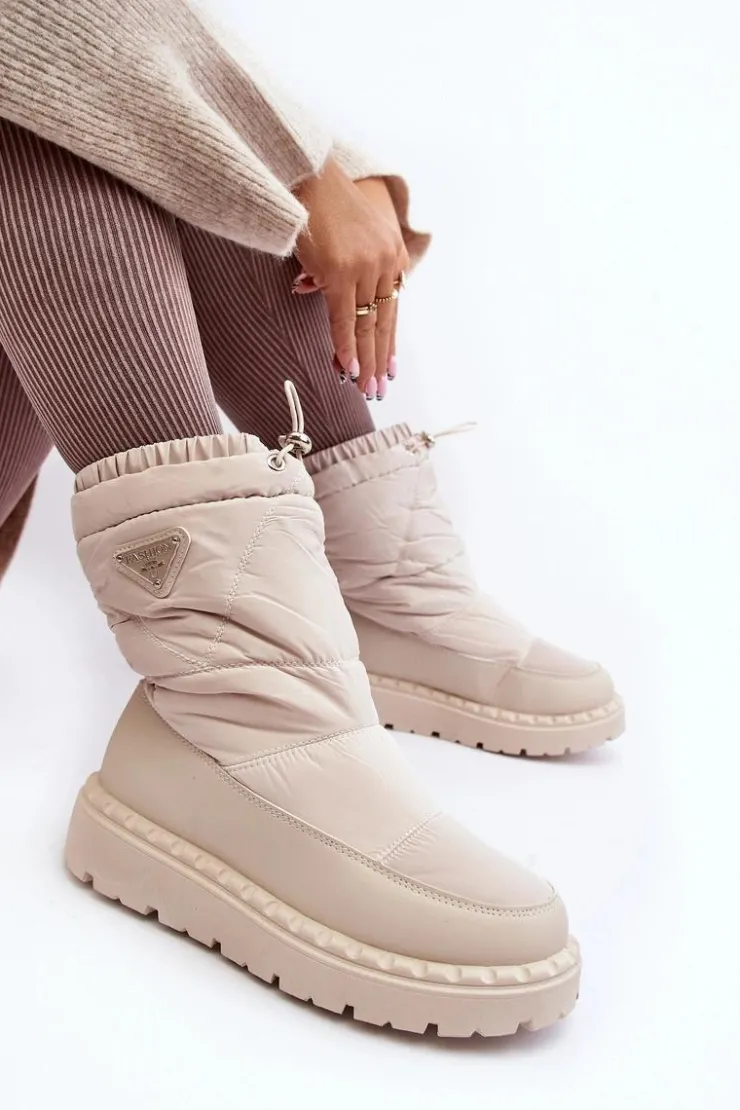 Outlet Boto Śniegowce Damskie Na Grubej Podeszwie Jasnobeżowe Lureta