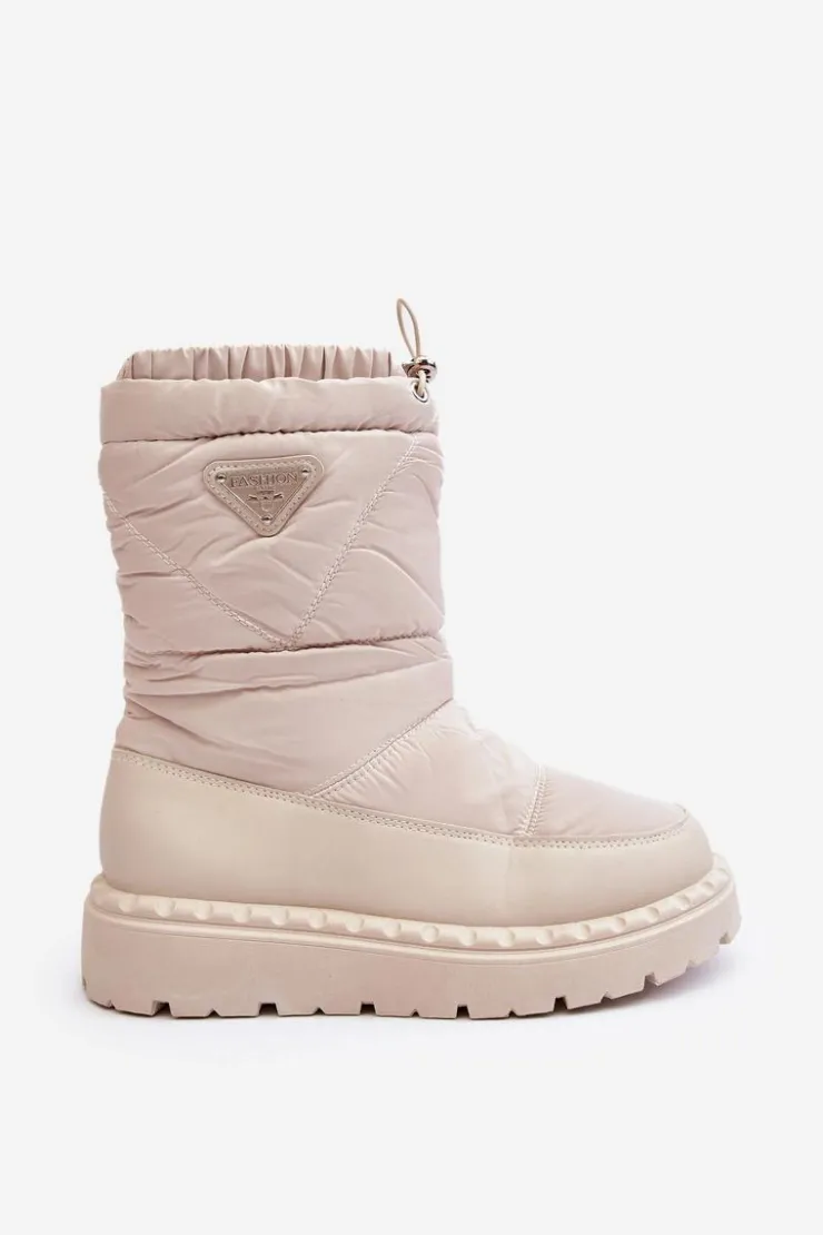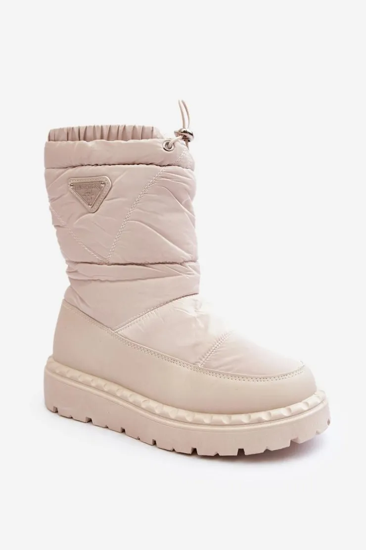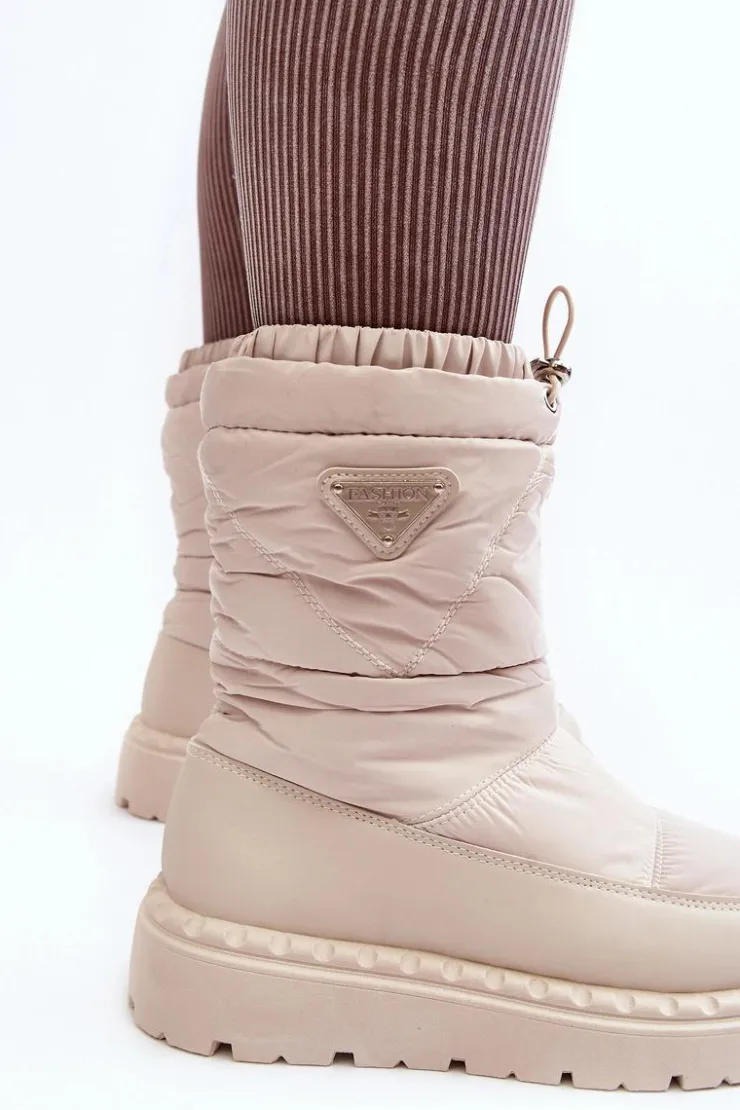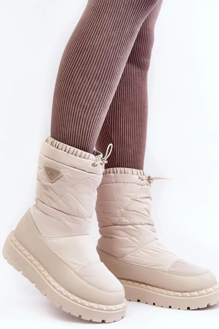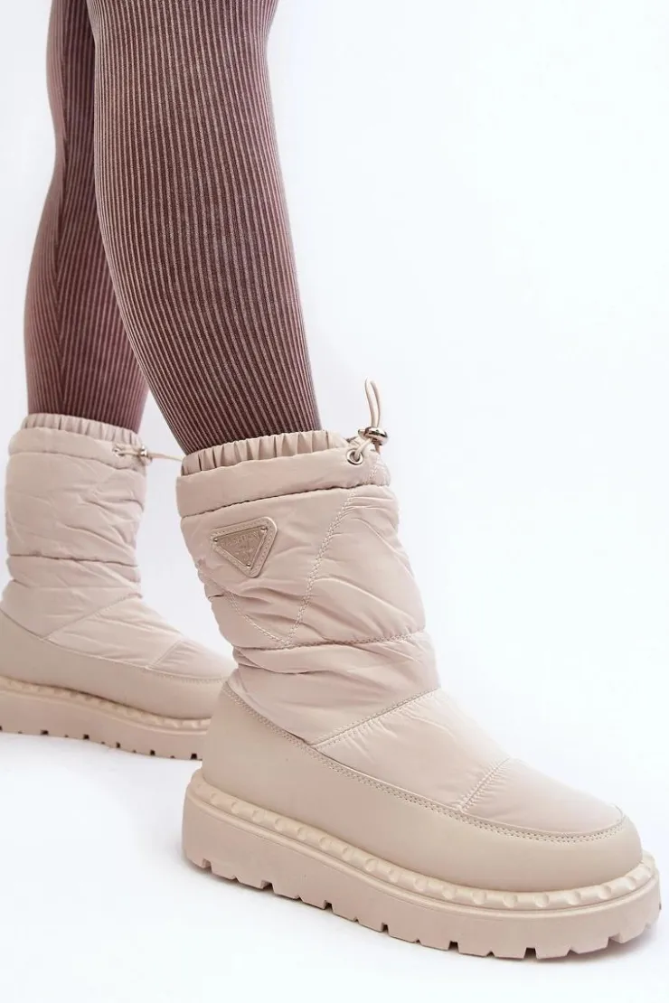 Outlet Boto Śniegowce Damskie Na Grubej Podeszwie Jasnobeżowe Lureta