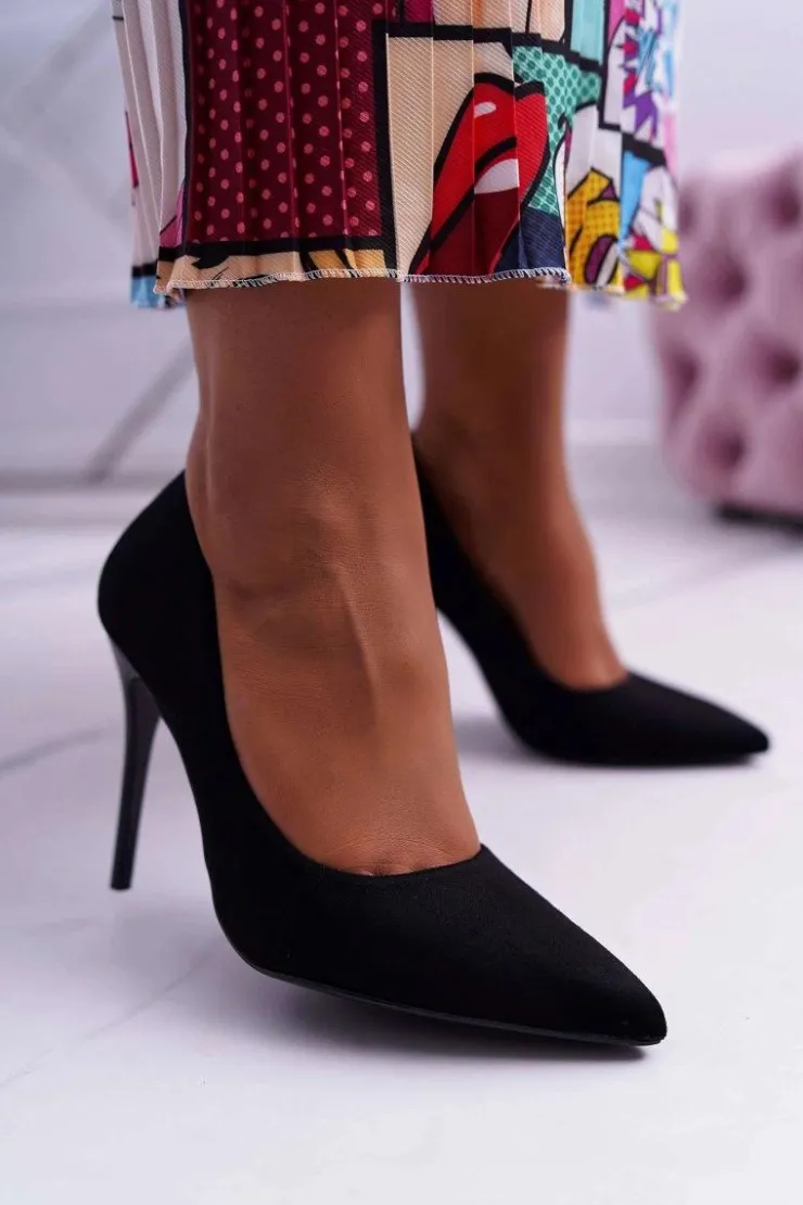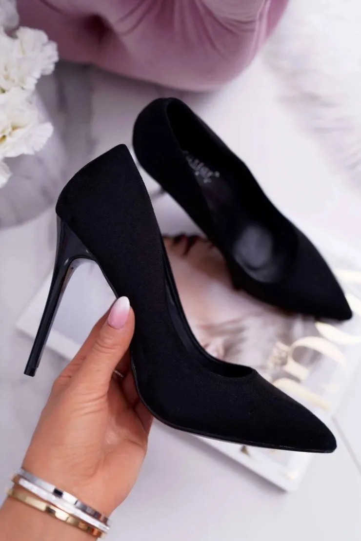 Outlet Boto Szpilki Damskie Zamszowe Czarne Yanna