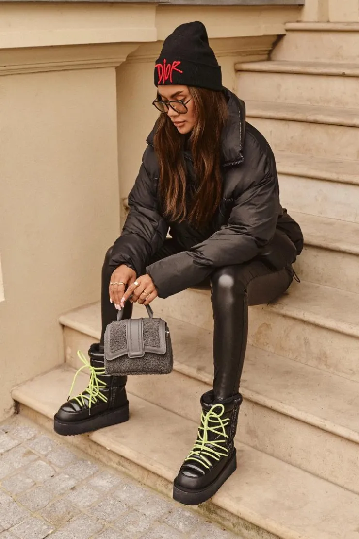 Modne śniegowce damskie zostały wykonane z wegańskich, wodoodpornych materiałów. Osadzone na grubej antypoślizgowej podeszwie. W środku ocieplone grubym, syntetycznym futerkiem.Niezwykle ciepłe, a zarazem stylowe. Koniecznie powinnaś je mieć! Przy wyborze rozmiaru prosimy sugerować się tabelą rozmiarów.