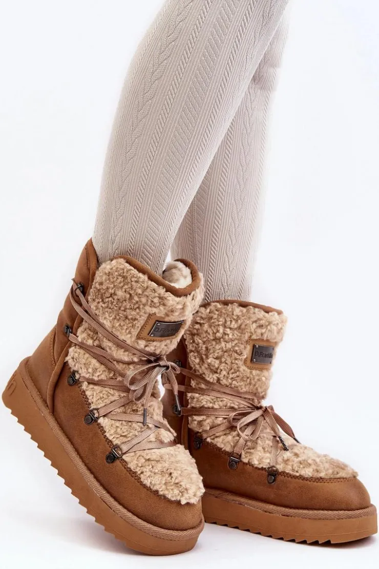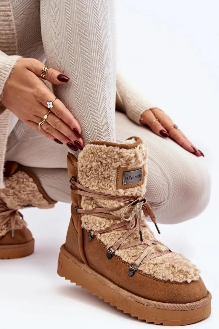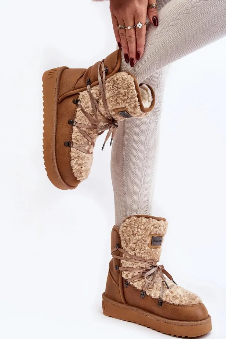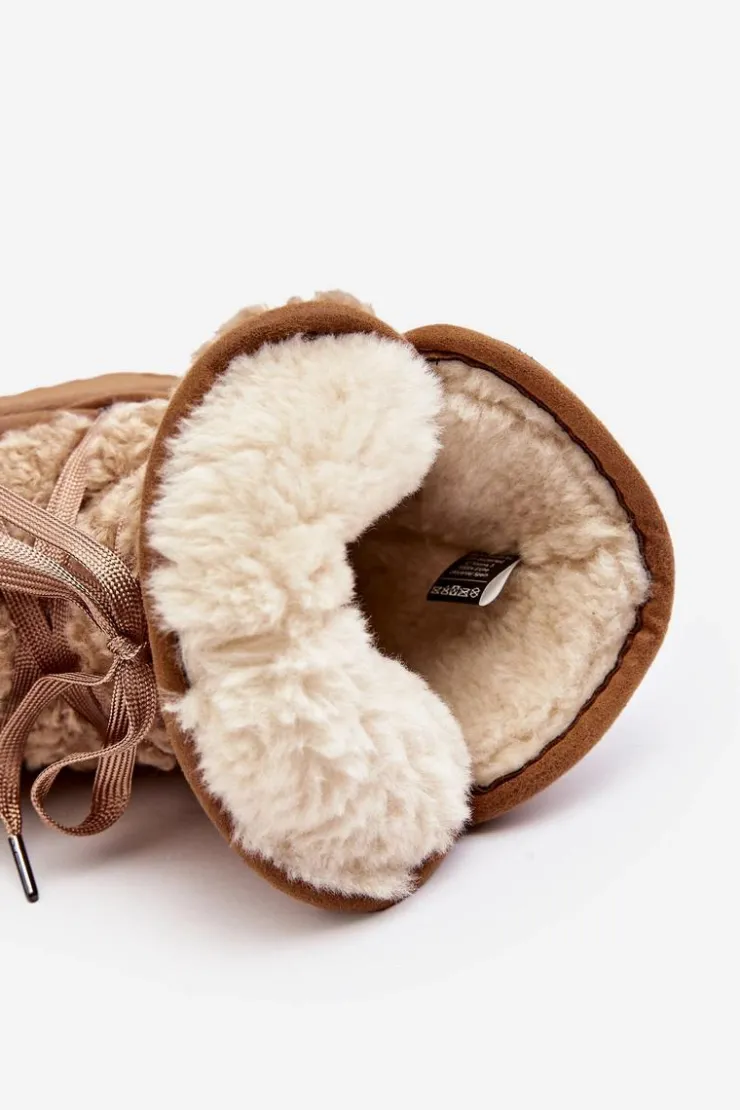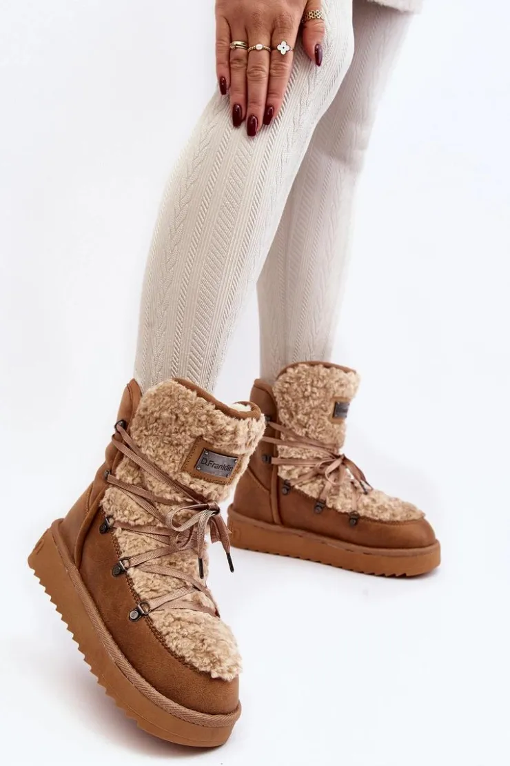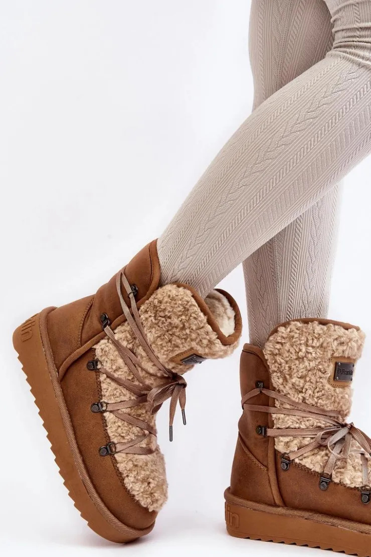 Śniegowce damskie wykonane z wysokiej jakości wodoodpornej tkaniny z mikrofibry. Osadzone na grubej antypoślizgowej podeszwie. Środek oraz przód ocieplony syntetycznym futerkiem. Model ten przeznaczony jest na najmroźniejsze dni. Śniegowce są wsuwane z dodatkowym wiązaniem. Wegańskie. Przy wyborze rozmiaru prosimy sugerować się tabelą rozmiarów.