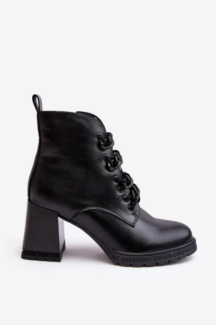 Damskie botki z cholewką za kostkę. Sznurowane oraz dodatkowo zapinane na suwak z boku. Osadzone na obcasie w postaci stabilnego słupka. Środek ocieplony kocem obuwniczym. Noski zaokrąglone. Usztywniony zapiętek. Model ten dopasujesz do wielu jesiennych stylizaji! Przy wyborze rozmiaru prosimy sugerować się tabelą rozmiarów.