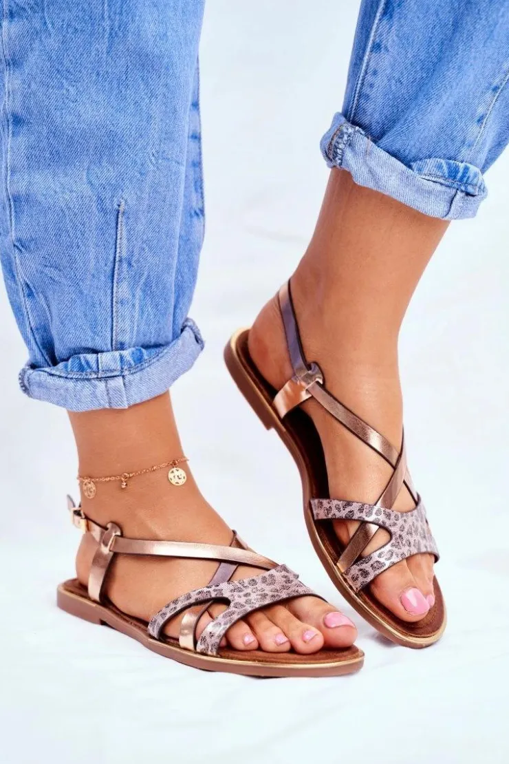 Outlet Evento Sandały Damskie Płaskie Champagne Barski Lomba
