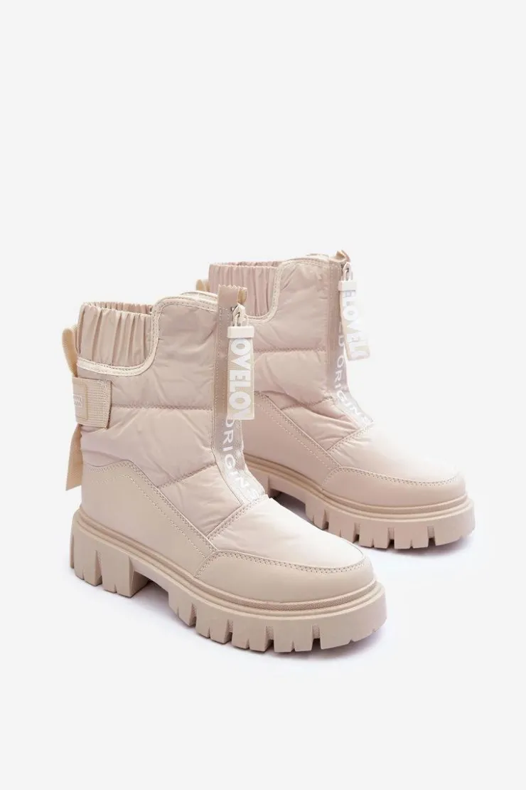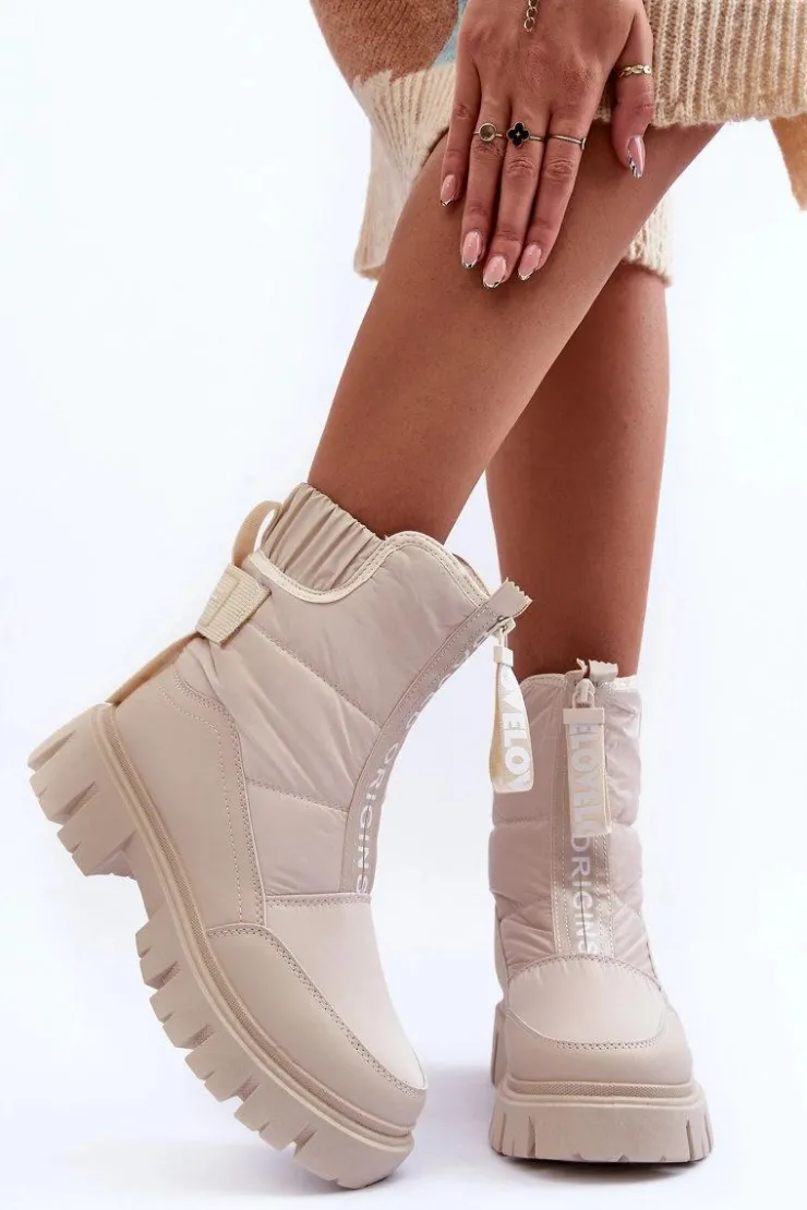 Modne, damskie śniegowce zostały wykonane z materiałów odpornych na wiatr czy mróz. Osadzone na płaskim obcasie i platformie. Model ten zapinany jest na suwak z przodu. Grube ocieplenie w postaci futerka zapewni ochronę przed zimnem. Przy wyborze rozmiaru prosimy sugerować się tabelą rozmiarów.