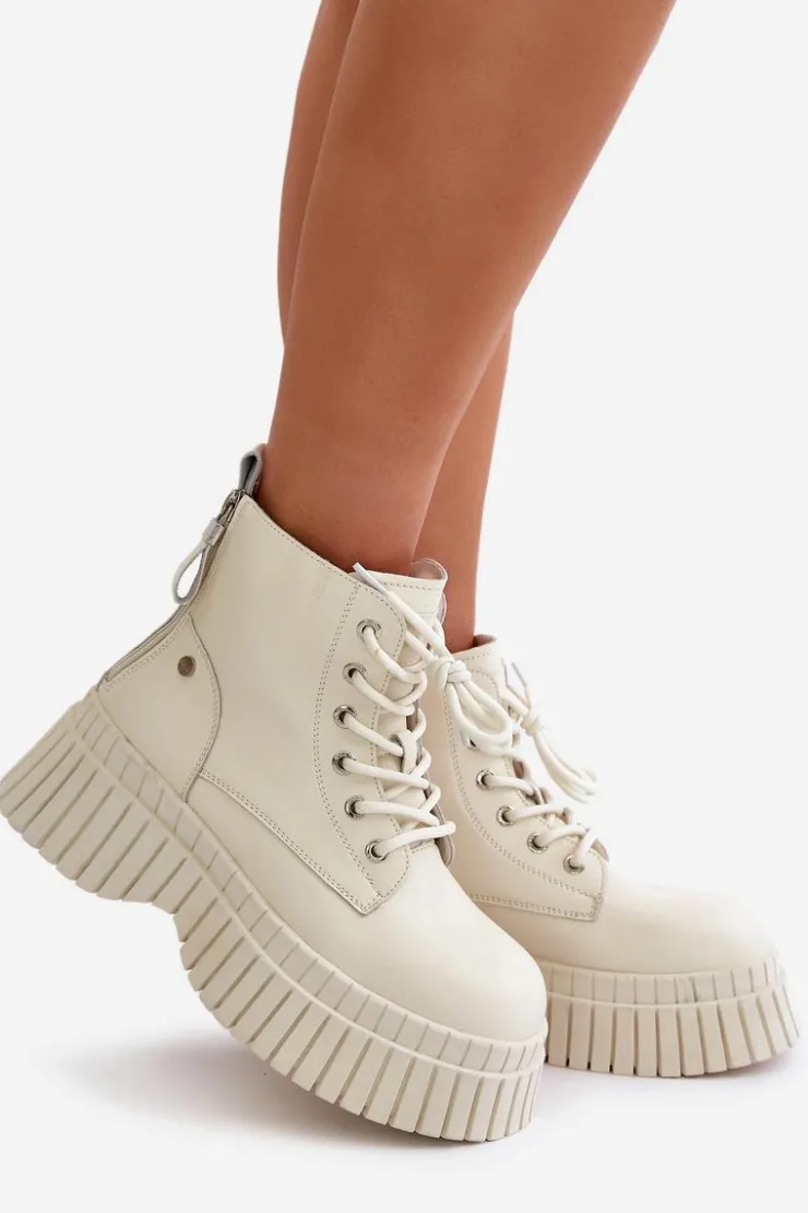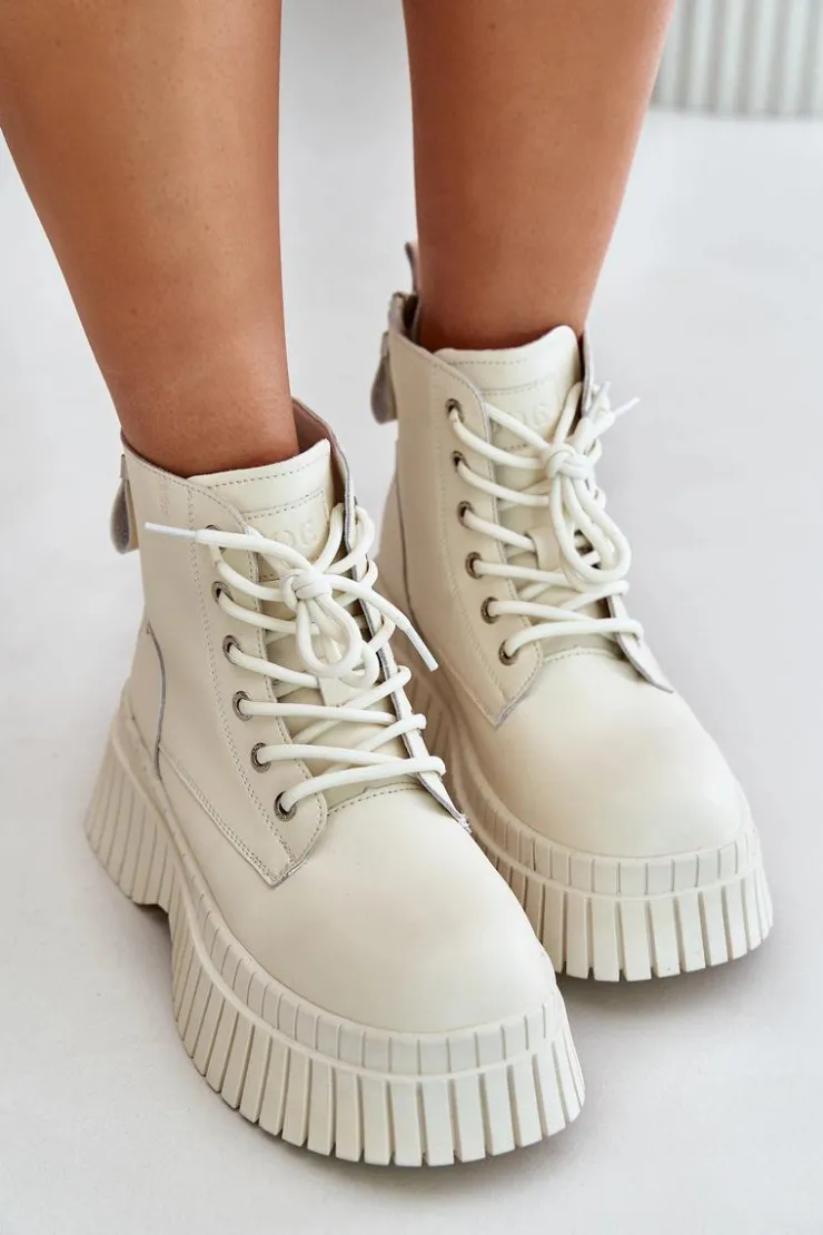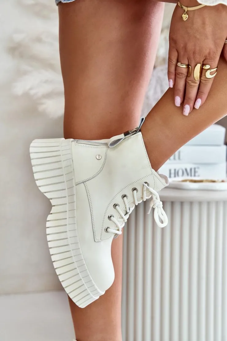 Trapery damskie od marki Goe to połączenie stylu i funkcjonalności. Wykonane z wysokiej jakości skóry naturalnej, gwarantują trwałość i komfort użytkowania. Osadzone na masywnej podeszwie, zapewniają doskonałą przyczepność na różnych nawierzchniach, co czyni je idealnym wyborem na chłodniejsze dni. Wnętrze butów ocieplane jest kocem obuwniczym, co sprawia, że stopy pozostają ciepłe. Trapery zapinane są na zamek, a dodatkowe sznurowanie umożliwia idealne dopasowanie do stopy, co zwiększa komfort noszenia oraz nadaje im modny, casualowy wygląd. Idealne na codzienne spacery czy weekendowe wypady. Przy wyborze rozmiaru prosimy kierować się tabelą rozmiarów