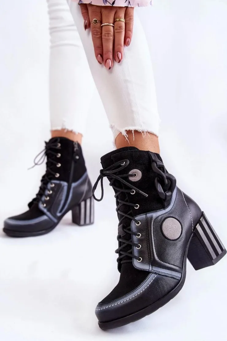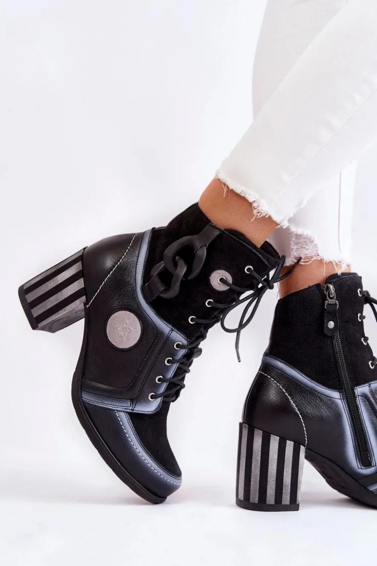 Wyjątkowe botki marki Maciejka zostały wykonane ze skór wysokiej jakości z dbałością o detale. Posiadają klasyczne sznurowanie oraz suwak. Zostały przyozdobione z boku łańcuchem oraz logo marki Maciejka. Osadzone na obcasie w postaci słupka. Ten model jest idealny dla osób kochających modowe nowości! Koniecznie sprawdź także pozostałe modele botków marki Maciejka! Przy wyborze rozmiaru prosimy sugerować się tabelą rozmiarów.